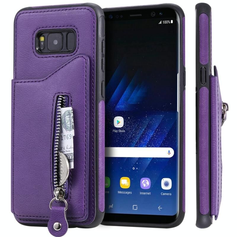 Για Galaxy S8 Plus Αμιγές χρώμα διπλό πόρπη φερμουάρ Shockproof προστατευτική θήκη (μωβ)