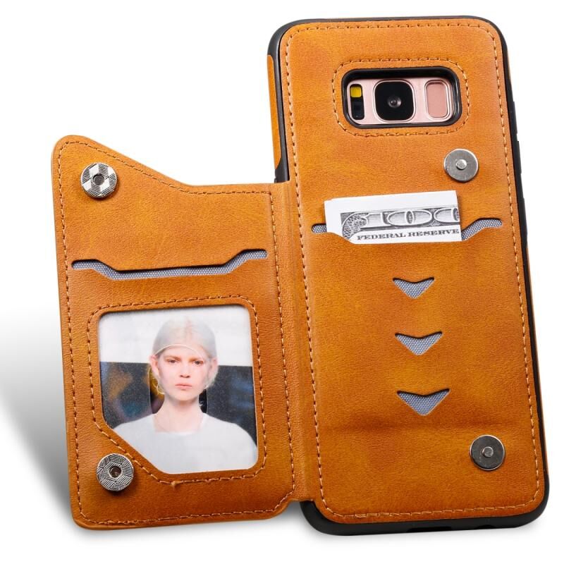 Για Galaxy S8 Αδιάβροχη θήκη με υφή μοσχαριού Προστατευτική θήκη με θήκη & υποδοχές καρτών & πλαίσιο (καφέ)