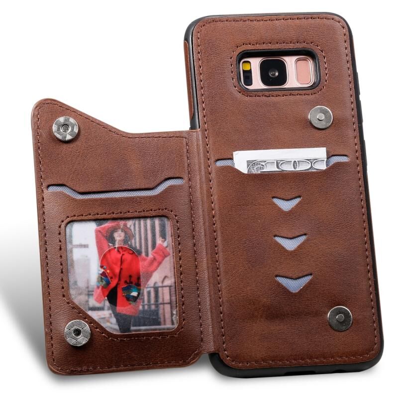 Για Galaxy S8 Αδιάβροχη θήκη με υφή μοσχαριού Προστατευτική θήκη με θήκη & υποδοχές καρτών & πλαίσιο (Καφές)