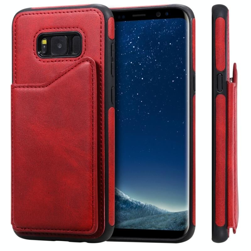 Για Galaxy S8+ Αδιάβροχη θήκη με υφή μοσχαριού με θήκη & υποδοχές καρτών & πλαίσιο (κόκκινο)