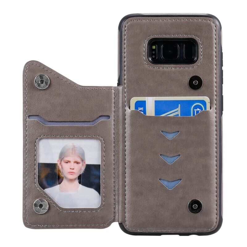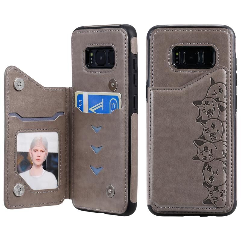 Θήκη προστασίας με ανάγλυφο σχέδιο έξι γατών για Galaxy S8 με βάση στήριξης & θήκες καρτών & κορνίζα φωτογραφιών (Γκρι)
