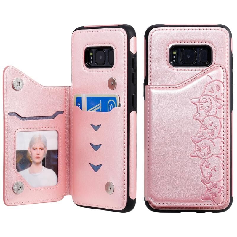 Θήκη προστασίας με ανάγλυφο σχέδιο έξι γατών για Galaxy S8 με βάση στήριξης & θήκες καρτών & κορνίζα φωτογραφιών (Ροζ χρυσός)