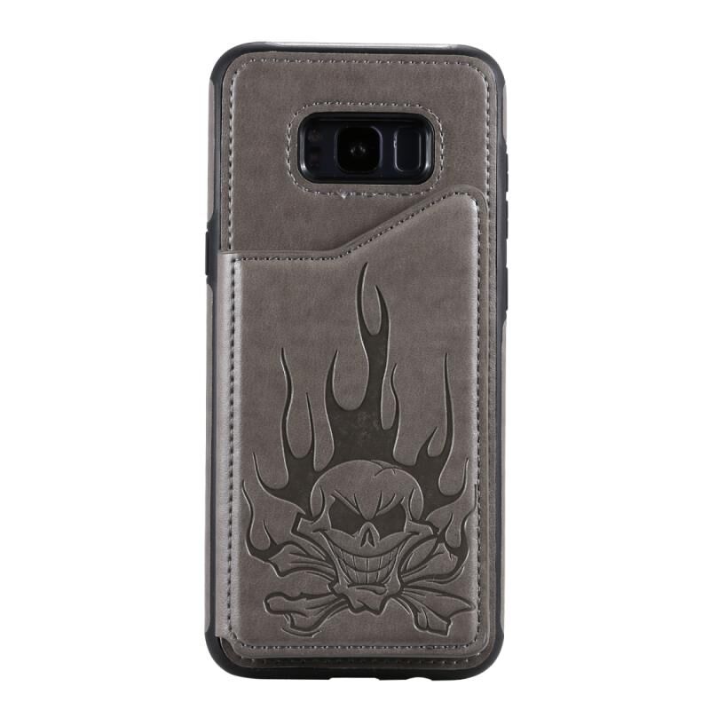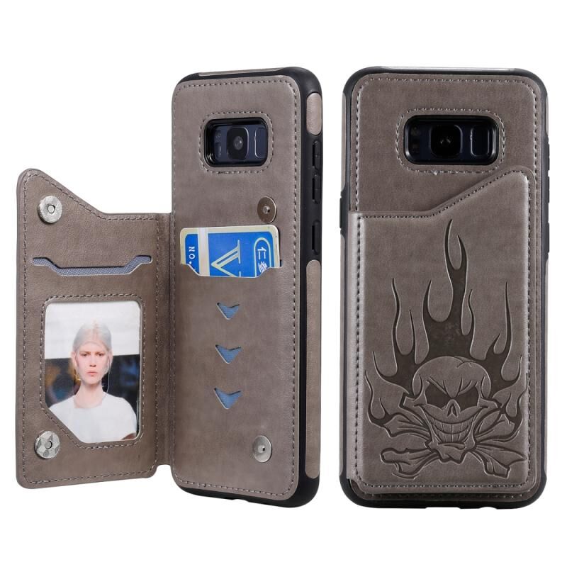 Θήκη προστασίας για Galaxy S8+ με ανάγλυφο σχέδιο κρανίου, αντικραδασμική, με βάση στήριξης & θήκες καρτών & πορτοφόλι (Μπλε)