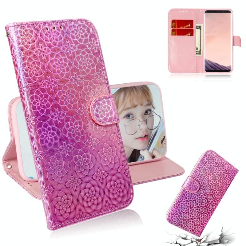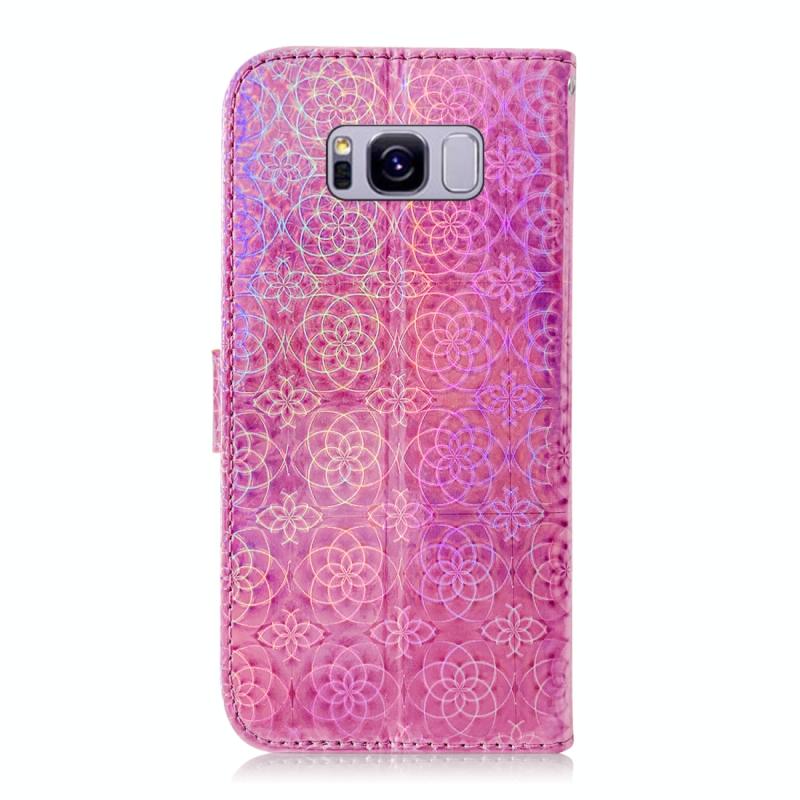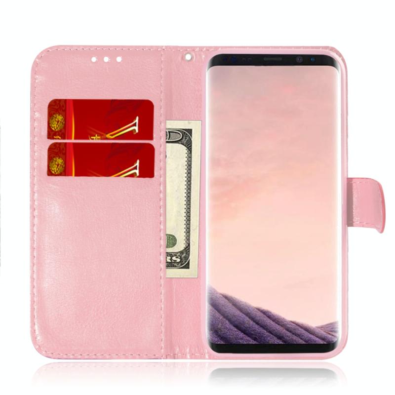 Θήκη για Galaxy S8, μονόχρωμη, πολύχρωμη, με μαγνητικό κούμπωμα, οριζόντια, από δερματίνη PU, με βάση στήριξης & θήκες καρτών & πορτοφόλι & κορδόνι (Ροζ)