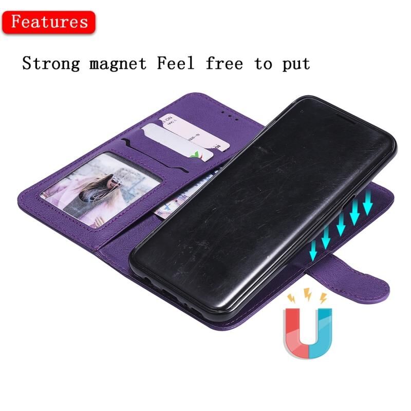 Για Galaxy S8 + Αμιγές χρώμα οριζόντια Flip προστατευτική θήκη με θήκη & υποδοχές για κάρτες & πορτοφόλι & πλαίσιο φωτογραφιών & κορδόνι (μωβ)