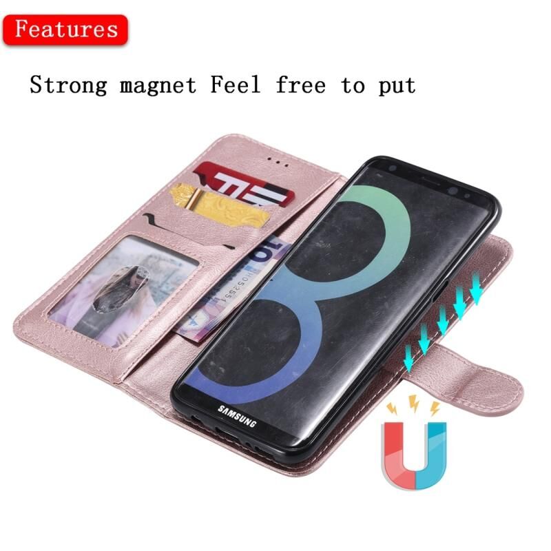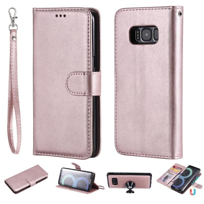 Για Galaxy S8 Αμιγές χρώμα οριζόντια Flip προστατευτική θήκη με θήκη & υποδοχές για κάρτες & πορτοφόλι & πλαίσιο φωτογραφιών & κορδόνι (ροζ χρυσό)