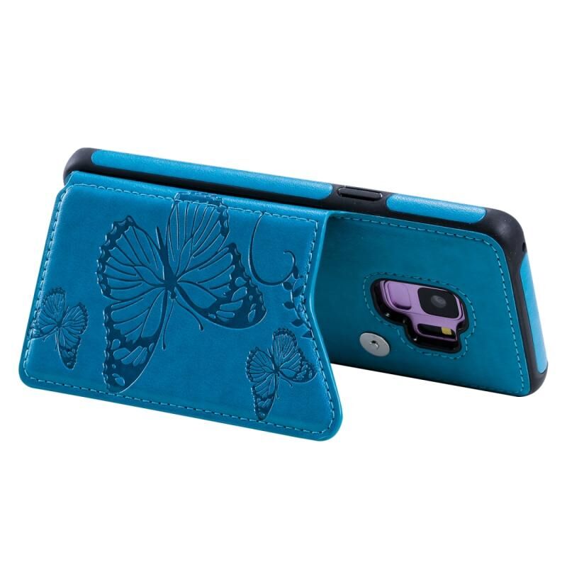 Θήκη προστασίας με ανάγλυφο σχέδιο πεταλούδας για Galaxy S9, ανθεκτική σε κρούσεις, με βάση στήριξης, θήκες για κάρτες & κορνίζα φωτογραφιών (Μπλε)