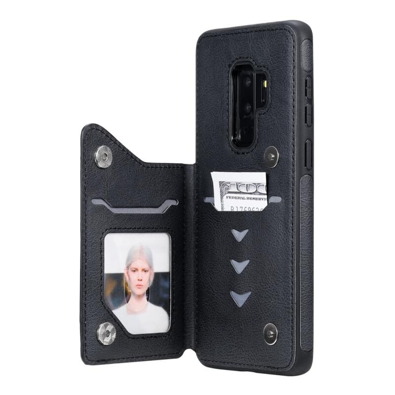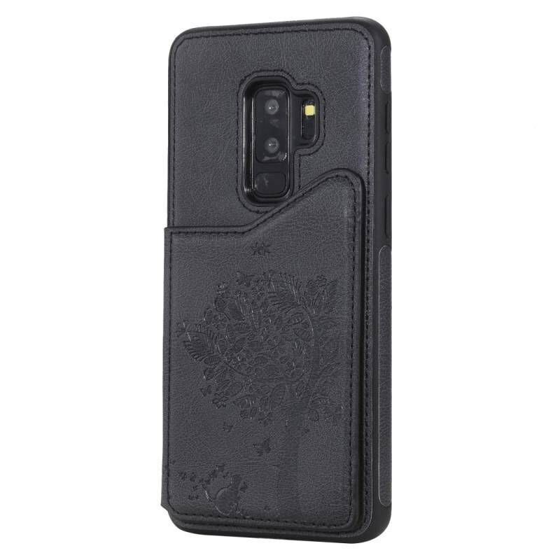 Θήκη προστασίας για Galaxy S9+ με σχέδιο ανάγλυφου, αντικραδασμική, με θήκες για κάρτες, κορνίζα φωτογραφιών & βάση στήριξης (Μαύρο)