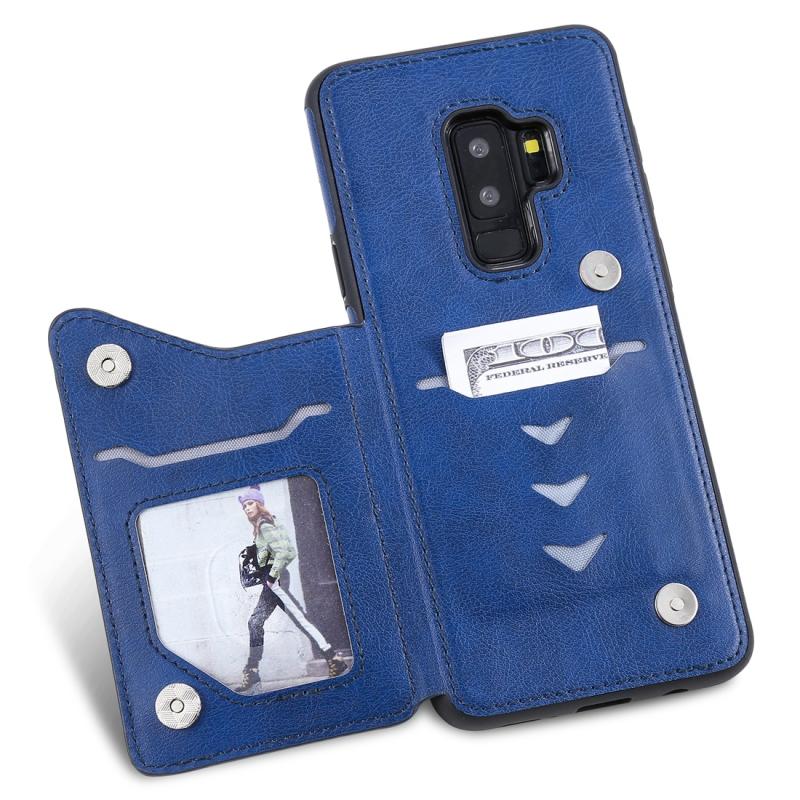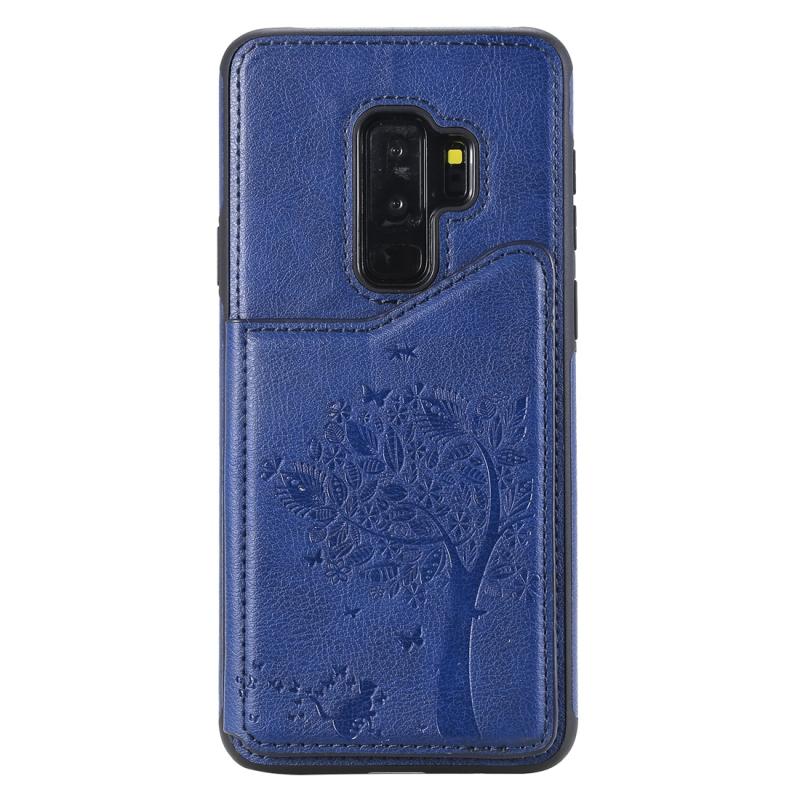 For Galaxy S9+ Cat Tree Embossing Pattern Shockproof Protective Case with Card Slots & Photo Frame(Blue)