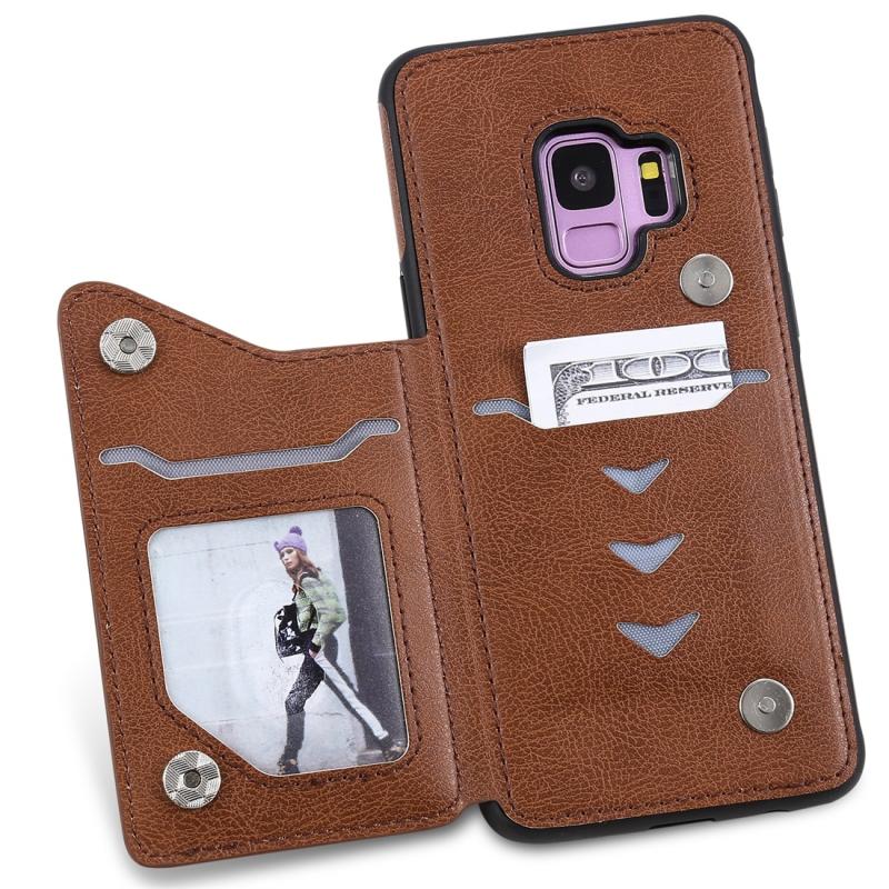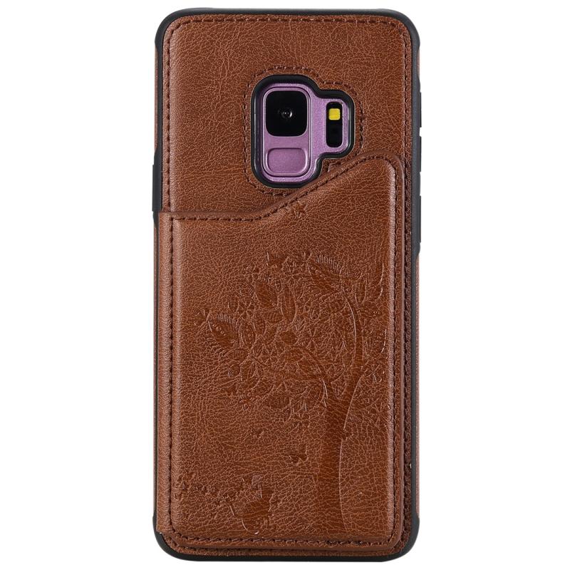 For Galaxy S9 Cat Tree Embossing Pattern Shockproof Protective Case with Card Slots & Photo Frame(Brown)