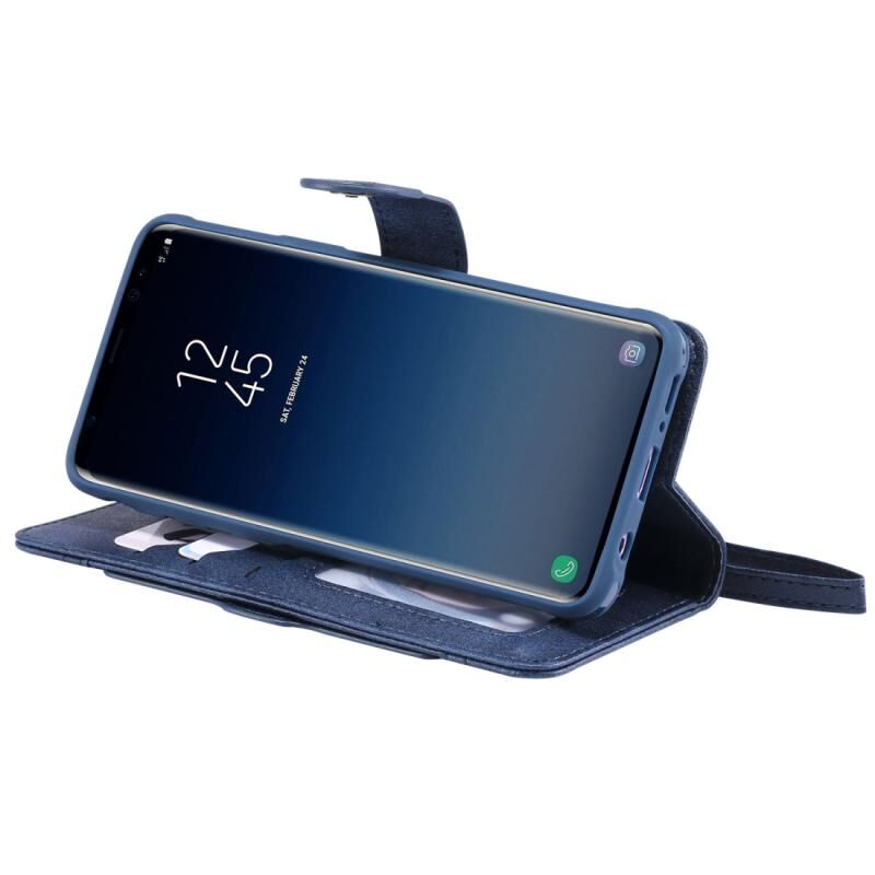 Για Galaxy S9 Πολυλειτουργική αποσπώμενη μαγνητική οριζόντια δερμάτινη θήκη με υποδοχές για κάρτες & θήκη για πορτοφόλι & κορνίζα φωτογραφιών (μπλε)
