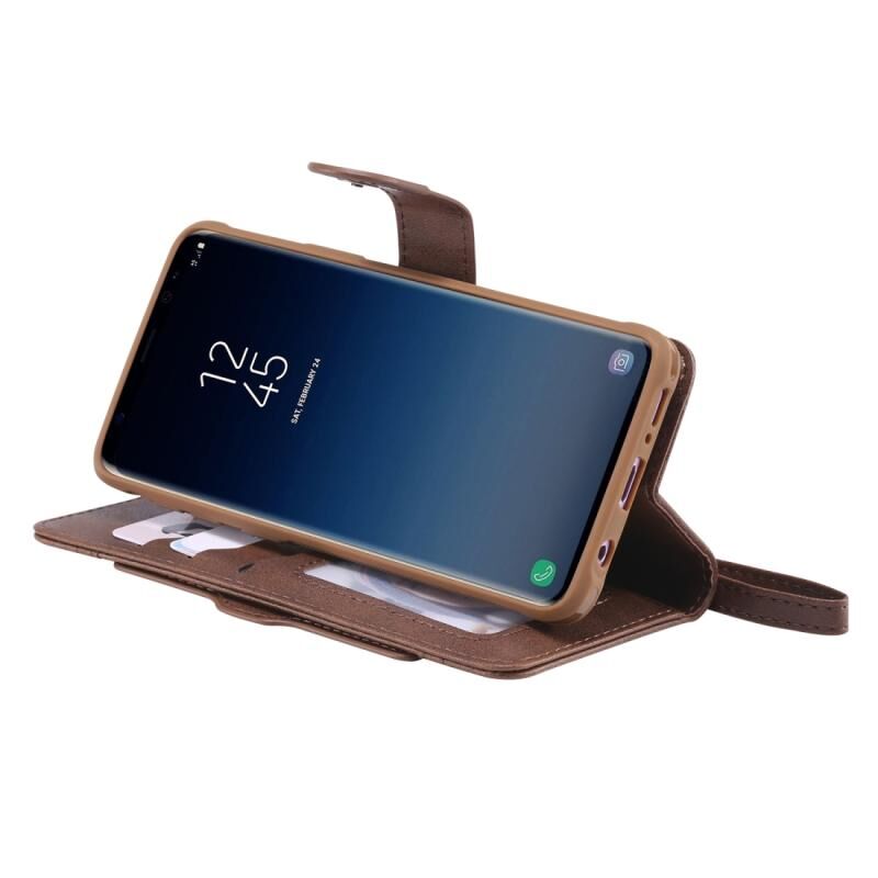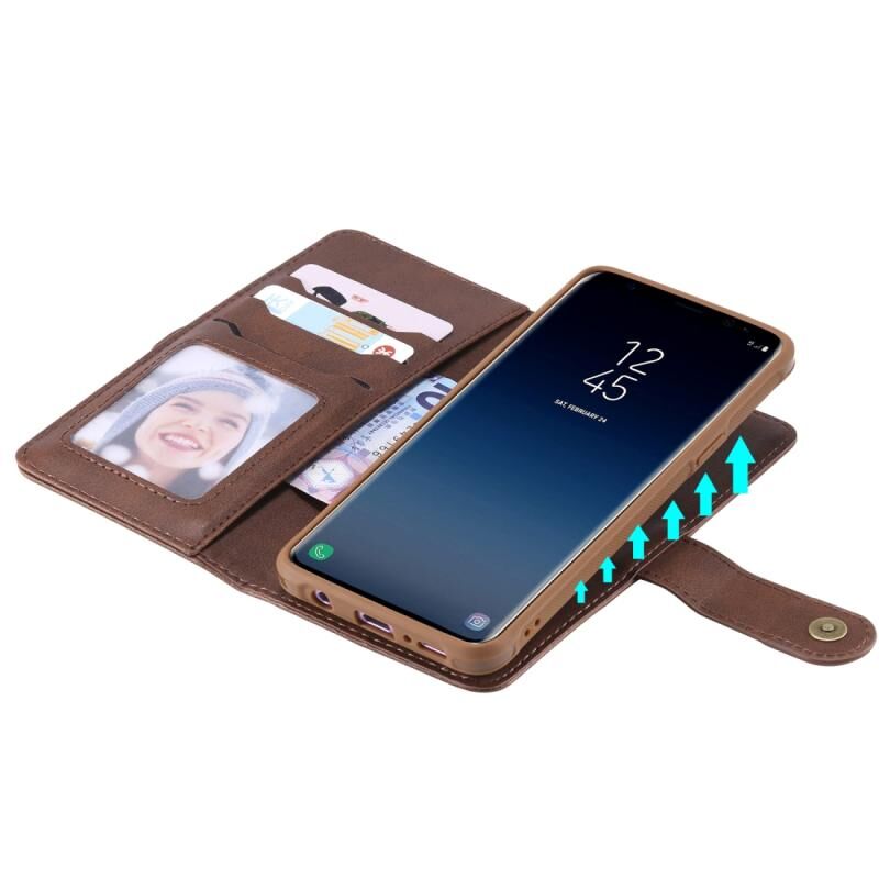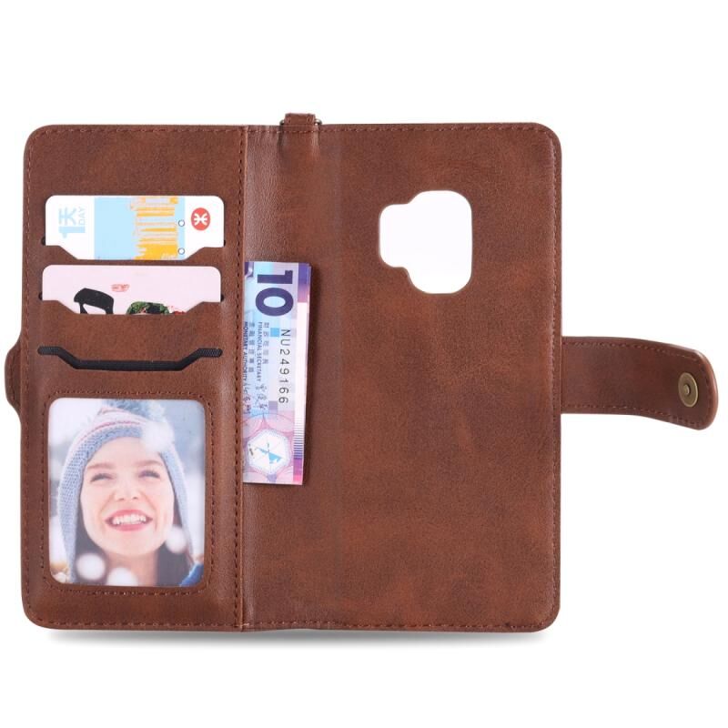 Για Galaxy S9 Πολυλειτουργική αποσπώμενη μαγνητική οριζόντια δερμάτινη θήκη με υποδοχές για κάρτες & θήκη για πορτοφόλι & κορνίζα φωτογραφιών (Καφές)
