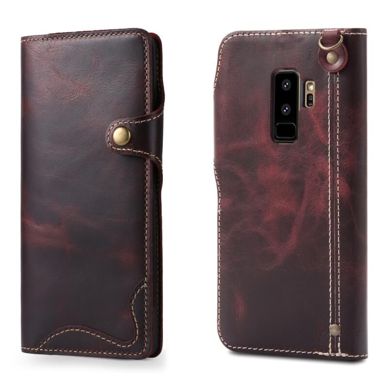 Για Galaxy S9 Plus Denior Oil Wax Cowhide μαγνητικό κουμπί οριζόντια Flip δερμάτινη θήκη με υποδοχές για κάρτες & πορτοφόλι (σκούρο κόκκινο) (Denior)