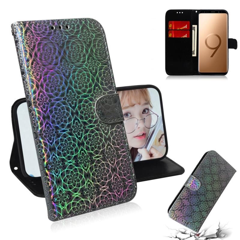 For Galaxy S9 Plus Solid Color Colorful Magnetic Buckle Horizontal Flip PU Leather Case with Holder & Card Slots & Wallet & Lanyard(Silver)