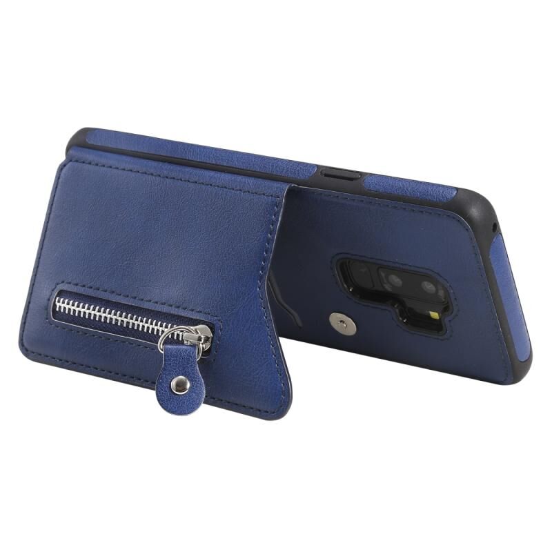 Για Galaxy S9 Plus Αμιγές χρώμα διπλό πόρπη φερμουάρ Shockproof προστατευτική θήκη (Μπλε)