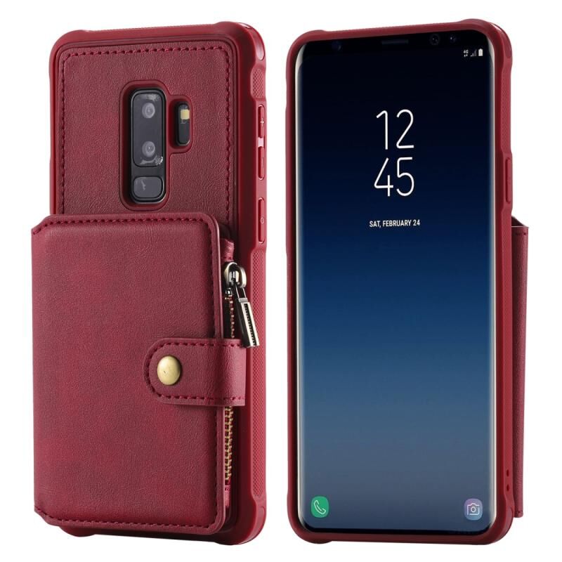 Για Galaxy S9 Plus φερμουάρ Αδιάβροχη προστατευτική θήκη με υποδοχές για κάρτες & βραχίονα & υποδοχή φωτογραφιών & λειτουργία πορτοφολιού (κόκκινο)
