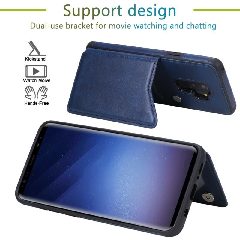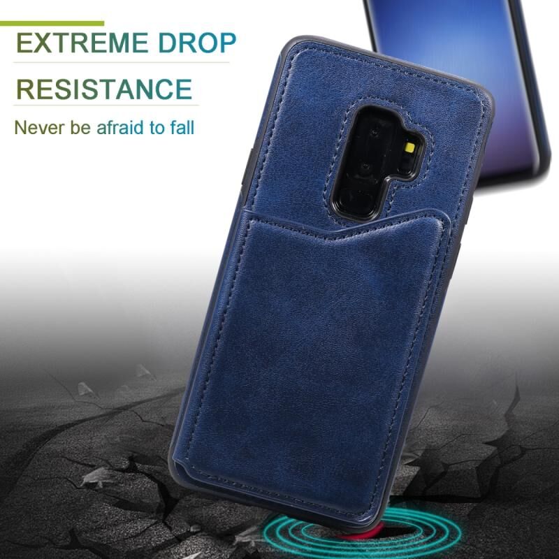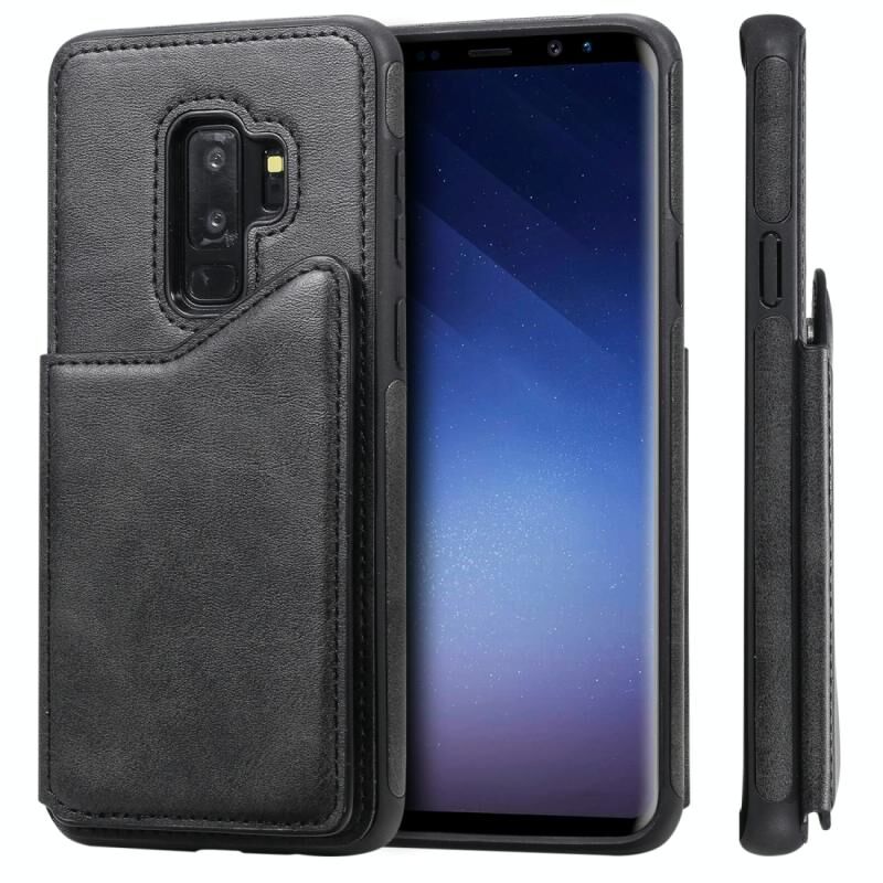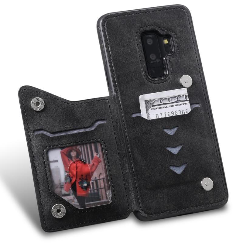 Για Galaxy S9+ Αδιάβροχη θήκη με υφή μοσχαριού με θήκη & υποδοχές καρτών & πλαίσιο (Μαύρο)