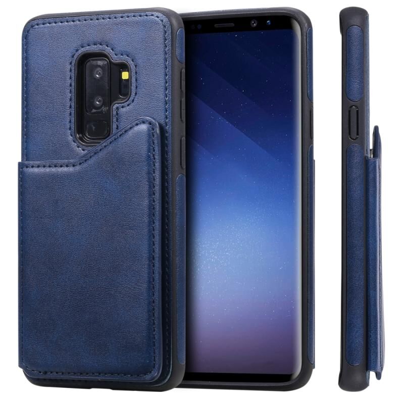 Για Galaxy S9+ Αδιάβροχη θήκη με υφή μοσχαριού με θήκη & υποδοχές καρτών & πλαίσιο (Μπλε)