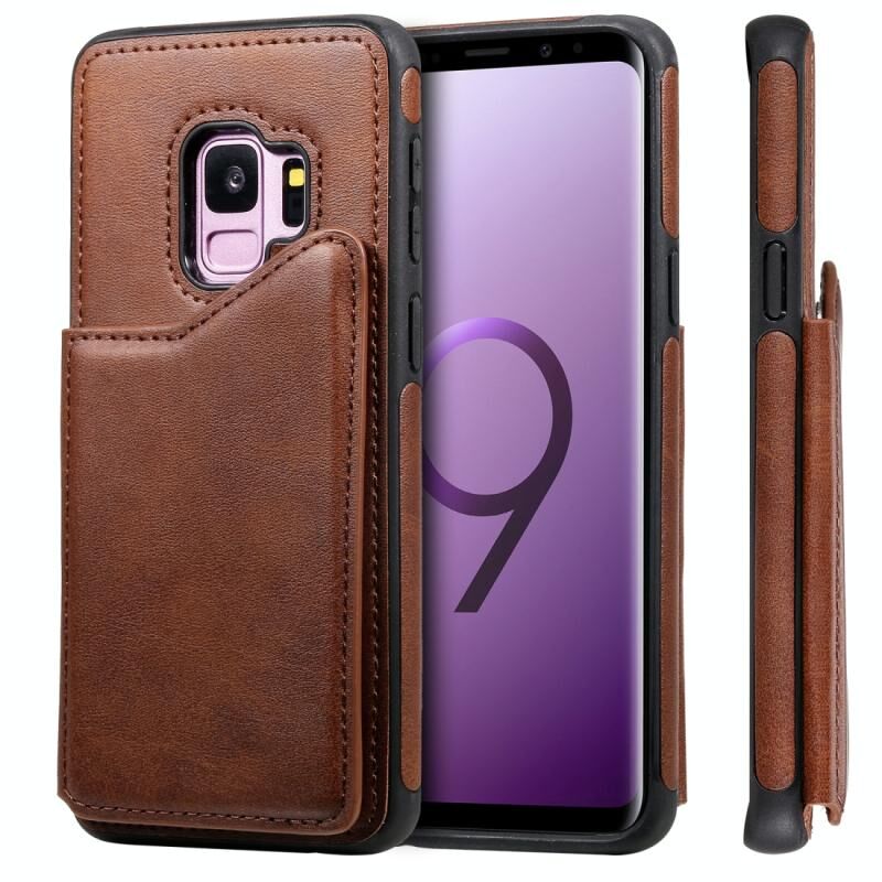 Για Galaxy S9 Αδιάβροχη θήκη με υφή μοσχαριού Προστατευτική θήκη με θήκη & υποδοχές καρτών & πλαίσιο (Καφέ)