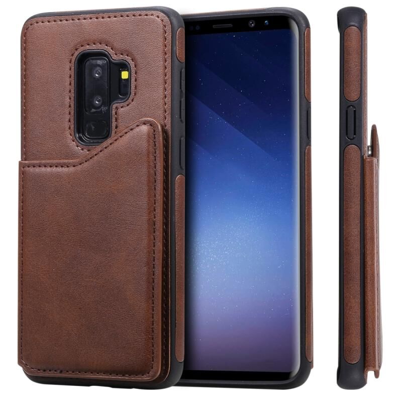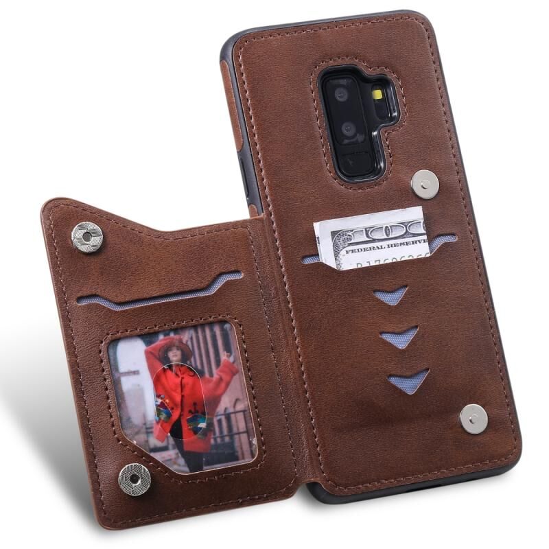 Για Galaxy S9+ Αδιάβροχη θήκη με υφή μοσχαριού με θήκη & υποδοχές καρτών & πλαίσιο (Καφές)