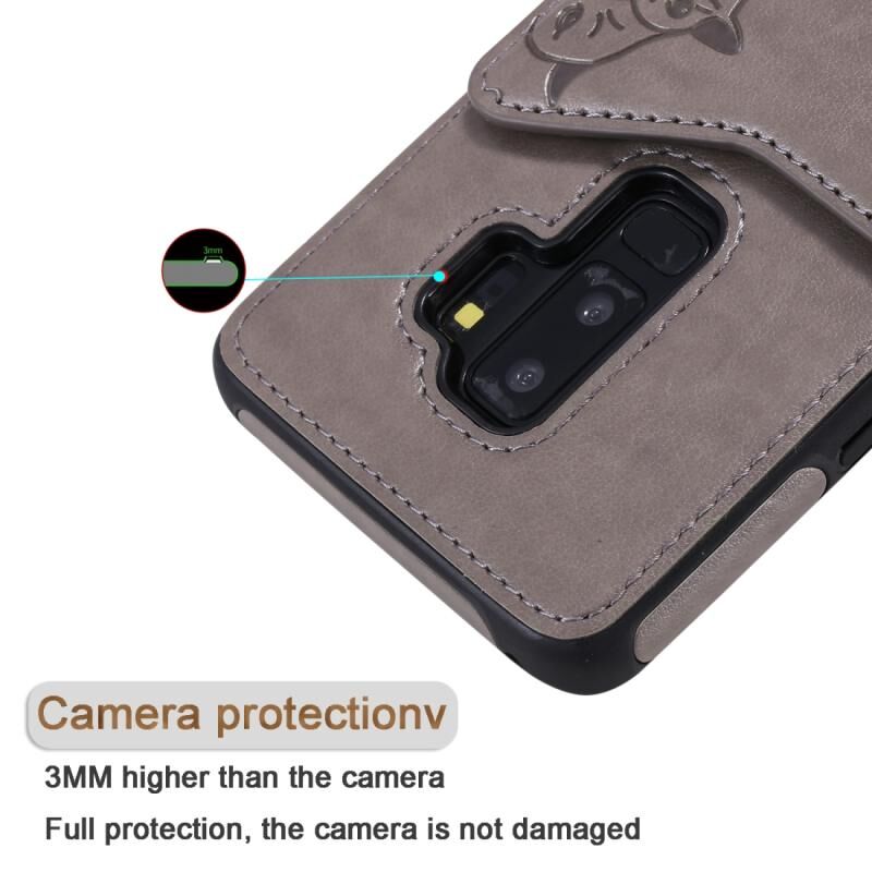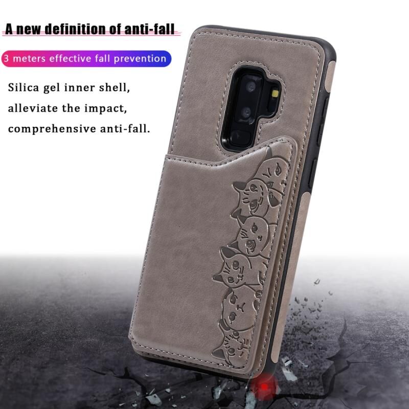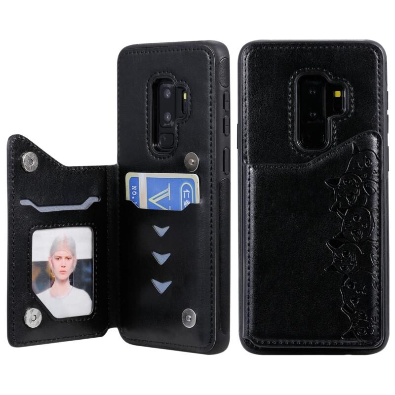 Θήκη προστασίας με ανάγλυφο σχέδιο έξι γατών για Galaxy S9+ με βάση στήριξης & θήκες καρτών & κορνίζα φωτογραφιών (Μαύρο)