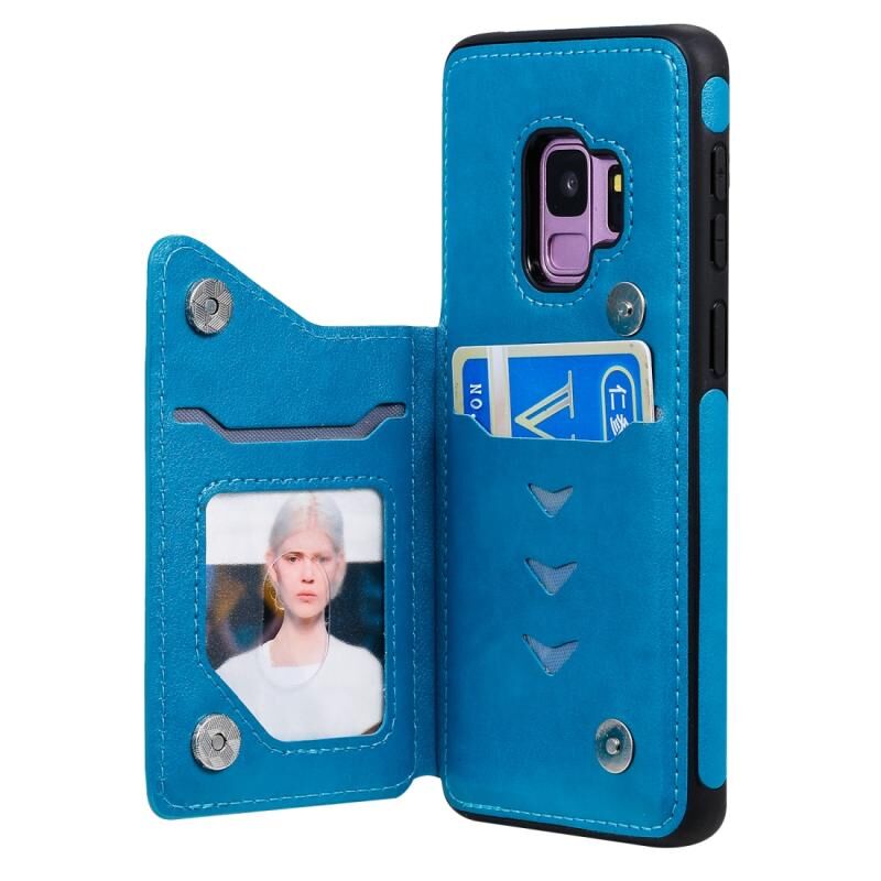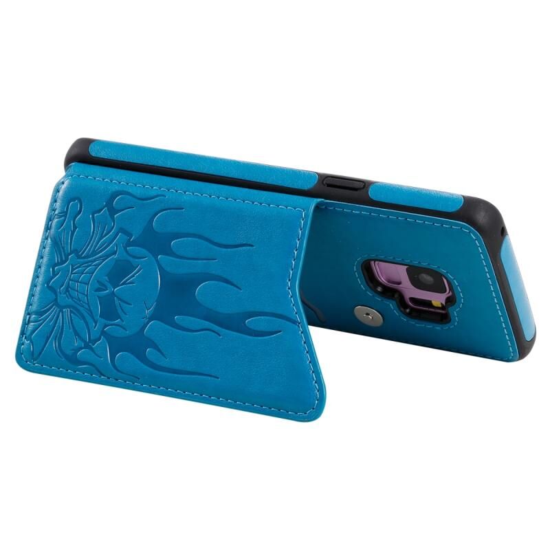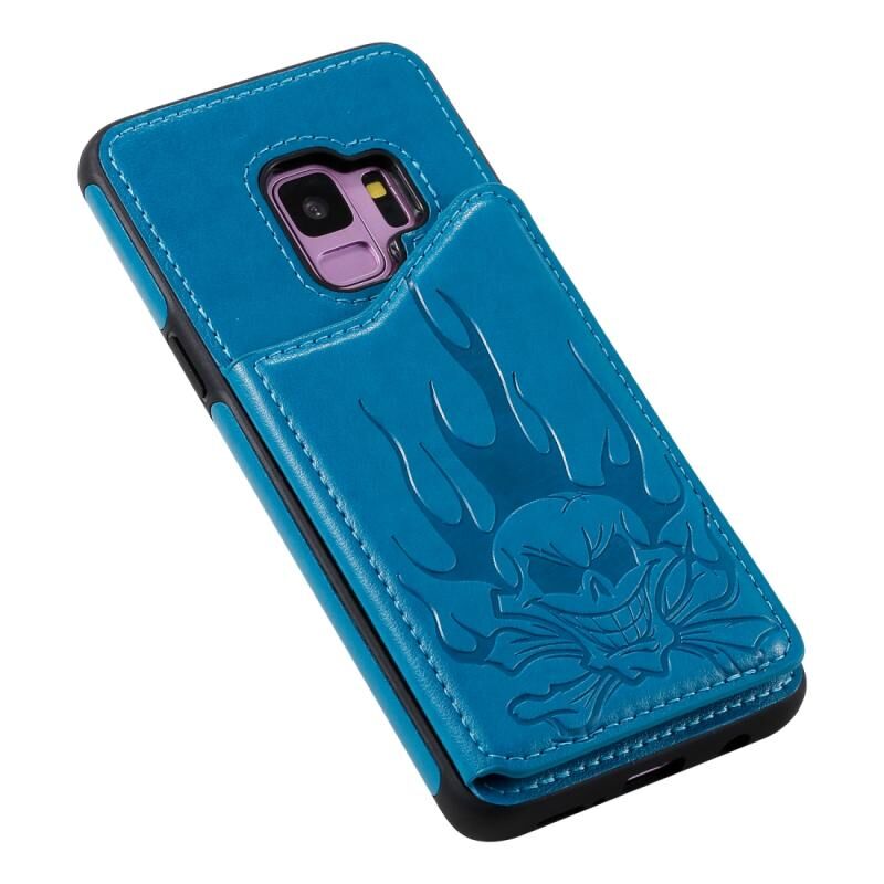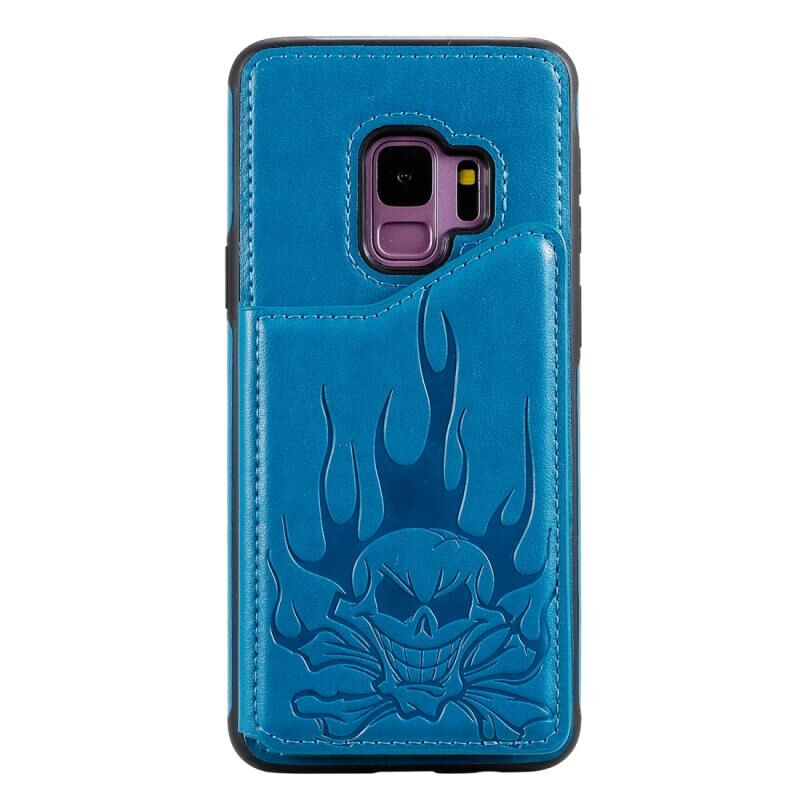 Θήκη προστασίας για Galaxy S9 με ανάγλυφο σχέδιο κρανίου, ανθεκτική σε κρούσεις, με βάση στήριξης, θήκες για κάρτες και πορτοφόλι (Μπλε)