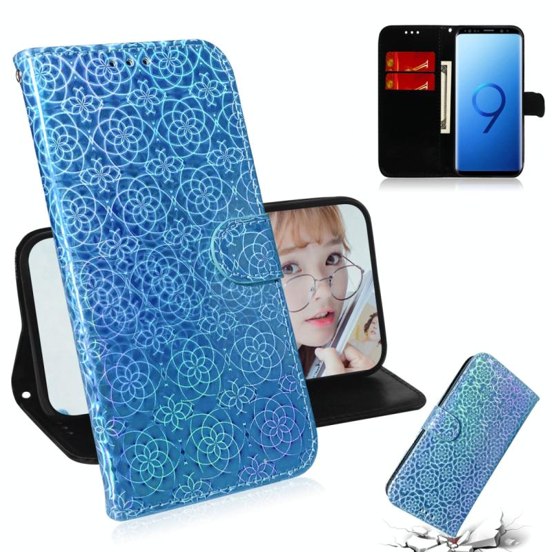 For Galaxy S9 Solid Color Colorful Magnetic Buckle Horizontal Flip PU Leather Case with Holder & Card Slots & Wallet & Lanyard(Blue)