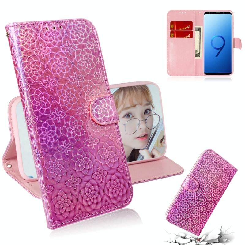 For Galaxy S9 Solid Color Colorful Magnetic Buckle Horizontal Flip PU Leather Case with Holder & Card Slots & Wallet & Lanyard(Pink)