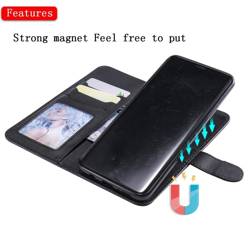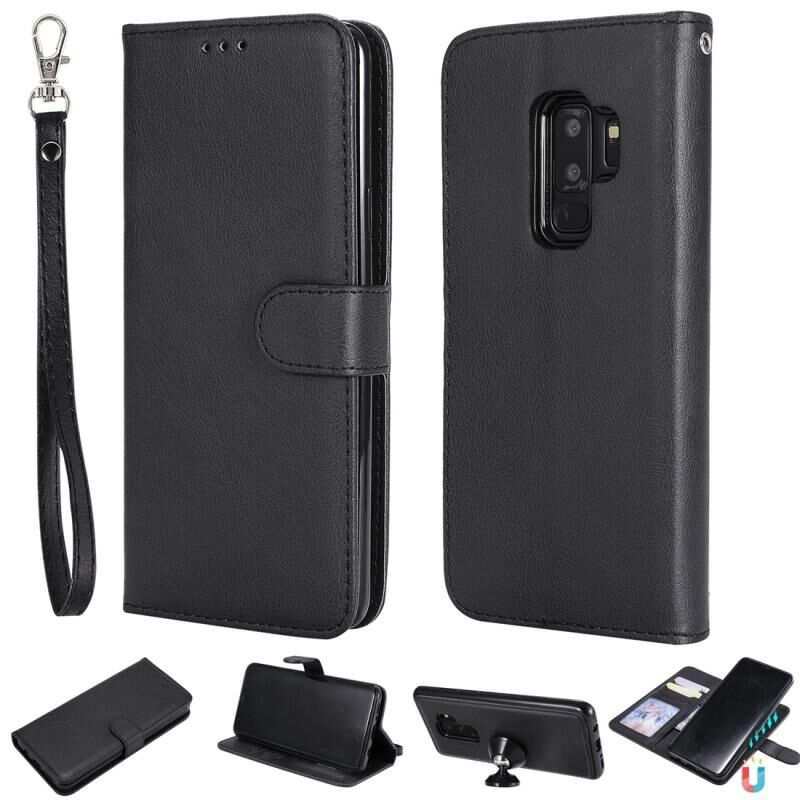 Για Galaxy S9+ Αμιγές χρώμα οριζόντια Flip προστατευτική θήκη με θήκη & υποδοχές για κάρτες & πορτοφόλι & κορνίζα φωτογραφιών & κορδόνι (Μαύρο)