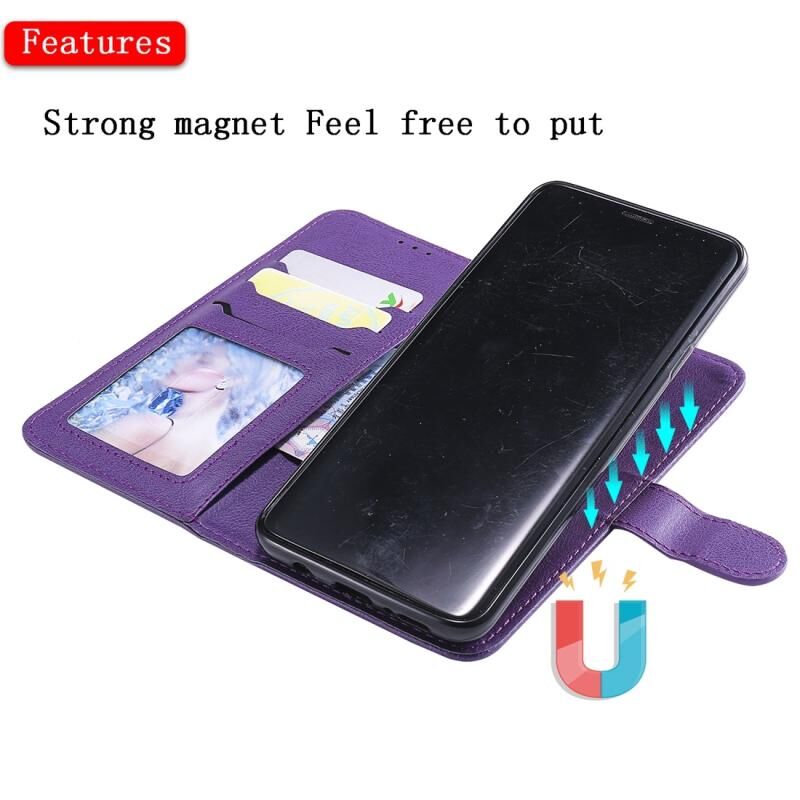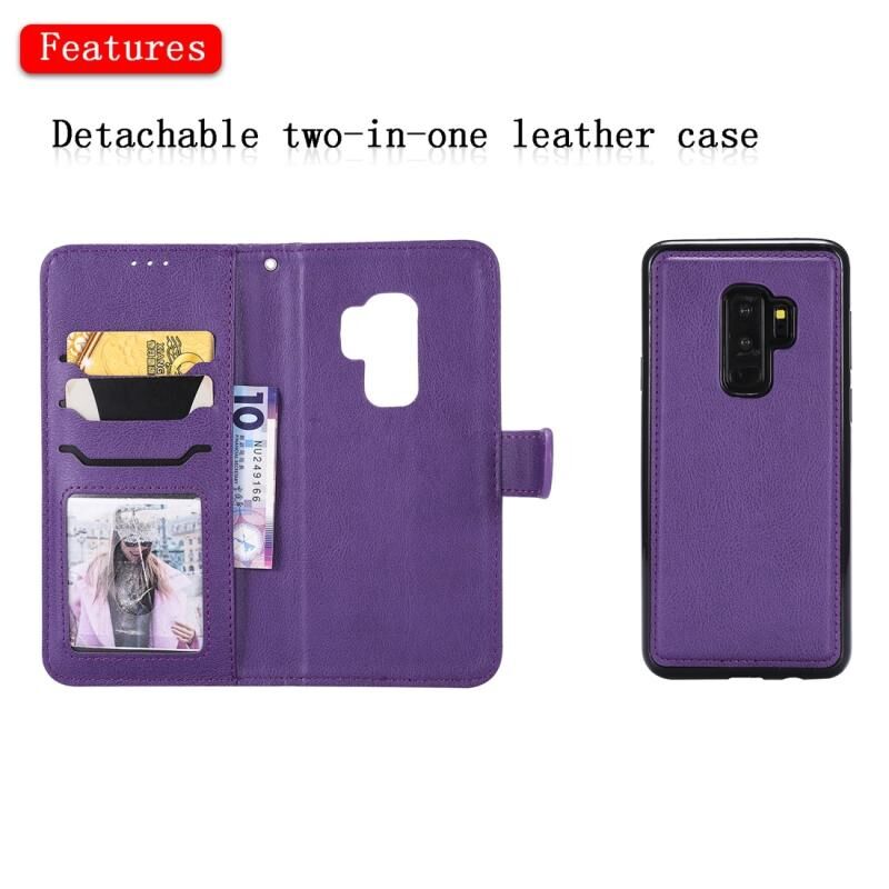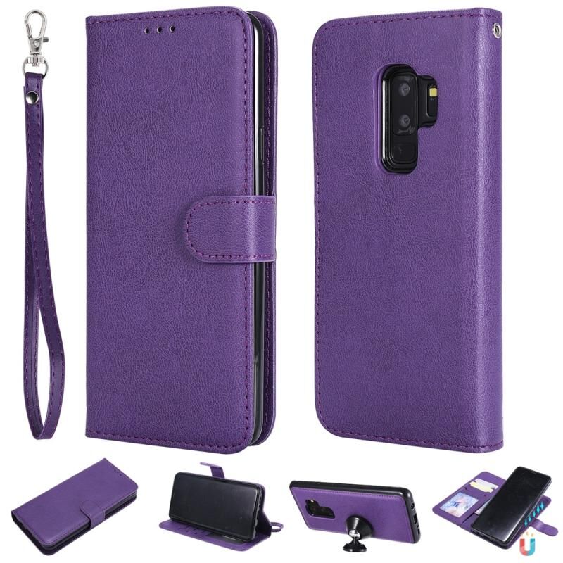 Για Galaxy S9 + Αμιγές χρώμα οριζόντια Flip προστατευτική θήκη με θήκη & υποδοχές για κάρτες & πορτοφόλι & κορνίζα φωτογραφιών & κορδόνι (Μωβ)