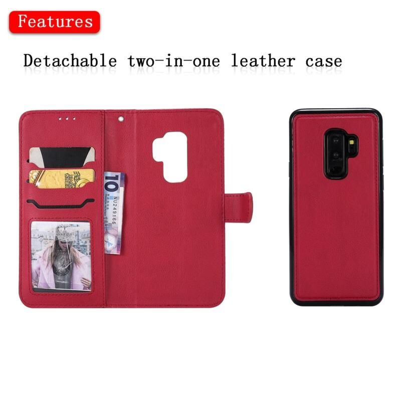 Για Galaxy S9+ Αμιγές χρώμα οριζόντια Flip προστατευτική θήκη με θήκη & υποδοχές για κάρτες & πορτοφόλι & πλαίσιο φωτογραφιών & κορδόνι (Κόκκινο)
