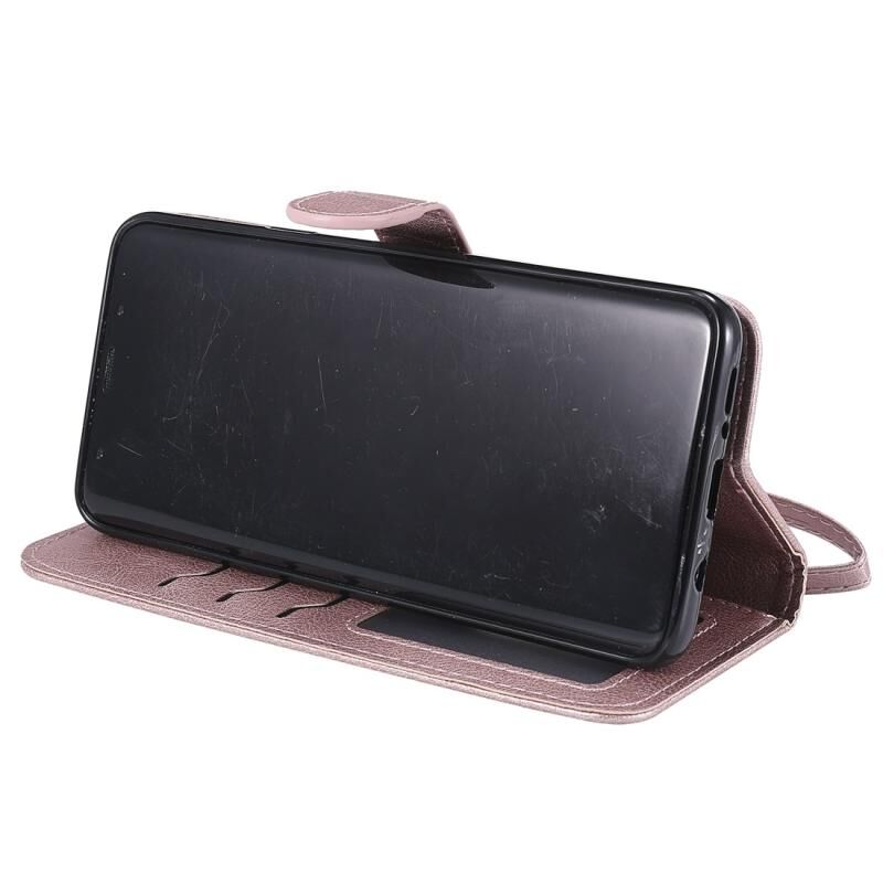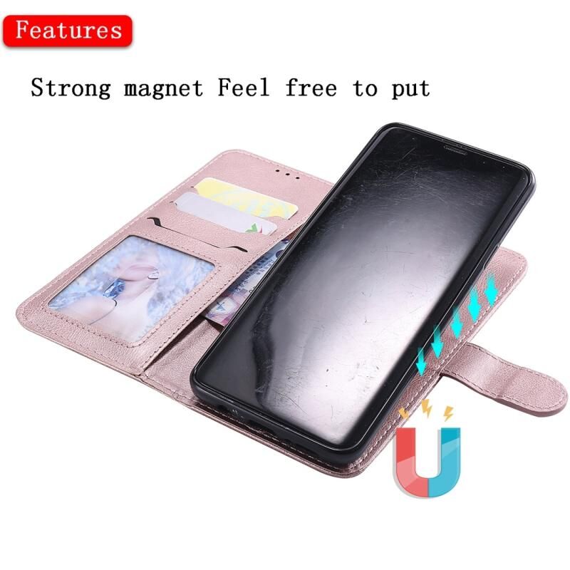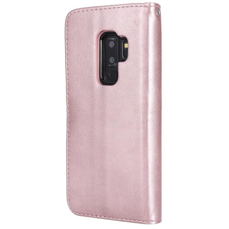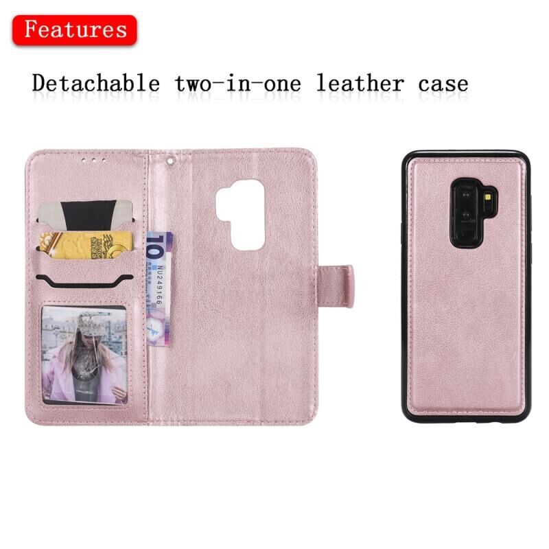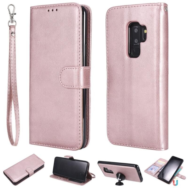 Για Galaxy S9 + Αμιγές χρώμα οριζόντια Flip προστατευτική θήκη με θήκη & υποδοχές για κάρτες & πορτοφόλι & πλαίσιο φωτογραφιών & κορδόνι (Ροζ χρυσός)