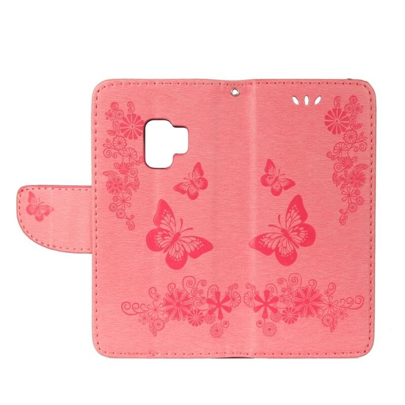 Για Galaxy S9 Vintage ανάγλυφο Floral πεταλούδα μοτίβο οριζόντια Flip δερμάτινη θήκη με υποδοχή κάρτας & κάτοχος & πορτοφόλι & κορδόνι (ροζ)