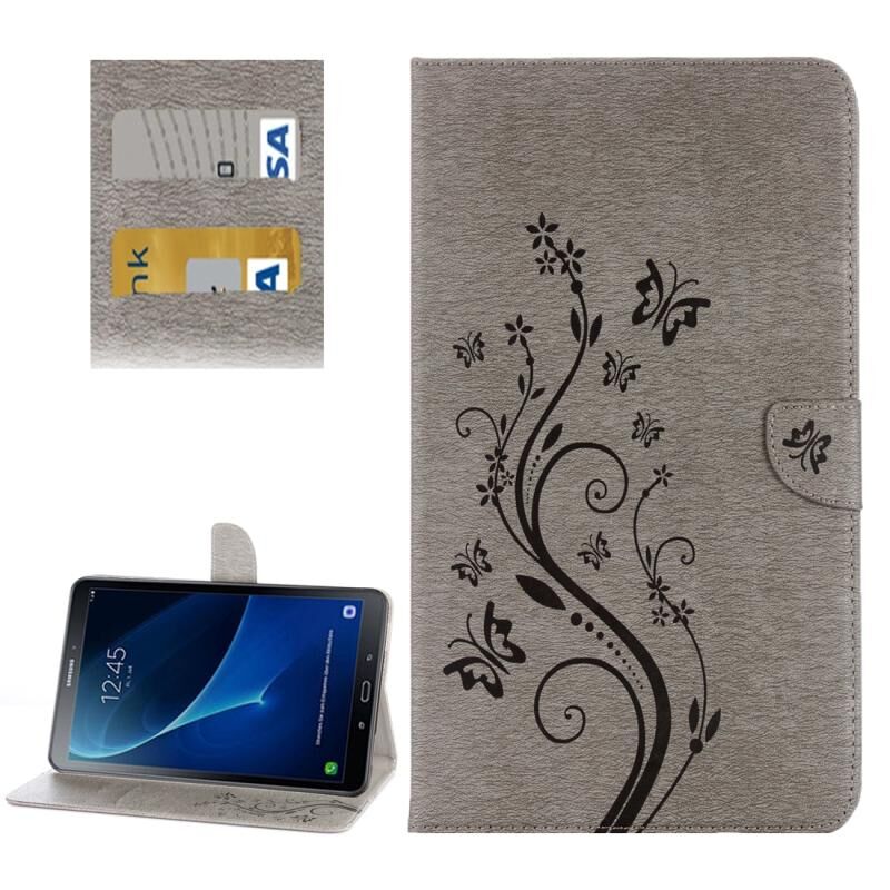 For Galaxy Tab A 10.1 (2016) / P580 Butterflies Love Flowers Embossing Horizontal Flip Leather Case with Holder & Card Slots & Wallet(Grey)