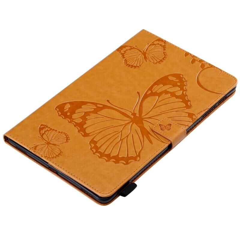 Για Galaxy Tab A 10.1 (2019) Θήκη οριζόντιας αναδίπλωσης από δερματίνη PU με σχέδιο πεταλούδας, εκτυπωμένο υπό πίεση, με βάση στήριξης & υποδοχές καρτών & πορτοφόλι & θήκη για στυλό (Κίτρινο)