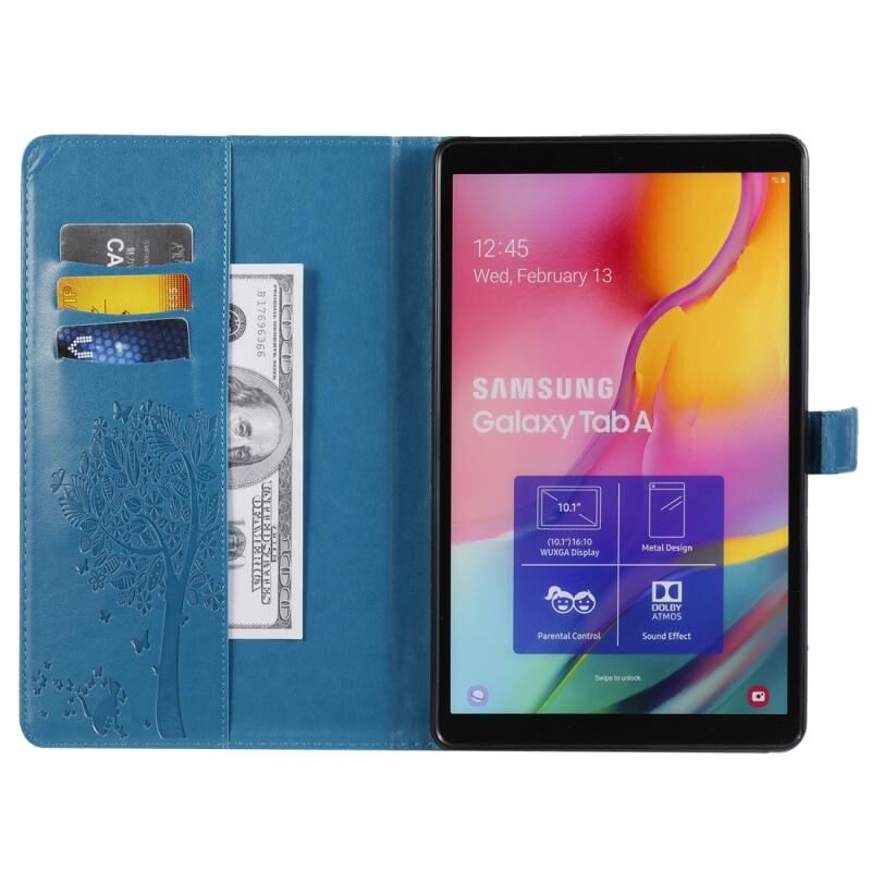 Για Galaxy Tab A 10.1 (2019) Θήκη δέρματος οριζόντιας αναδίπλωσης με σχέδιο τυπωμένου γατιού και δέντρου, με βάση στήριξης & υποδοχές καρτών & πορτοφόλι (Πράσινο)