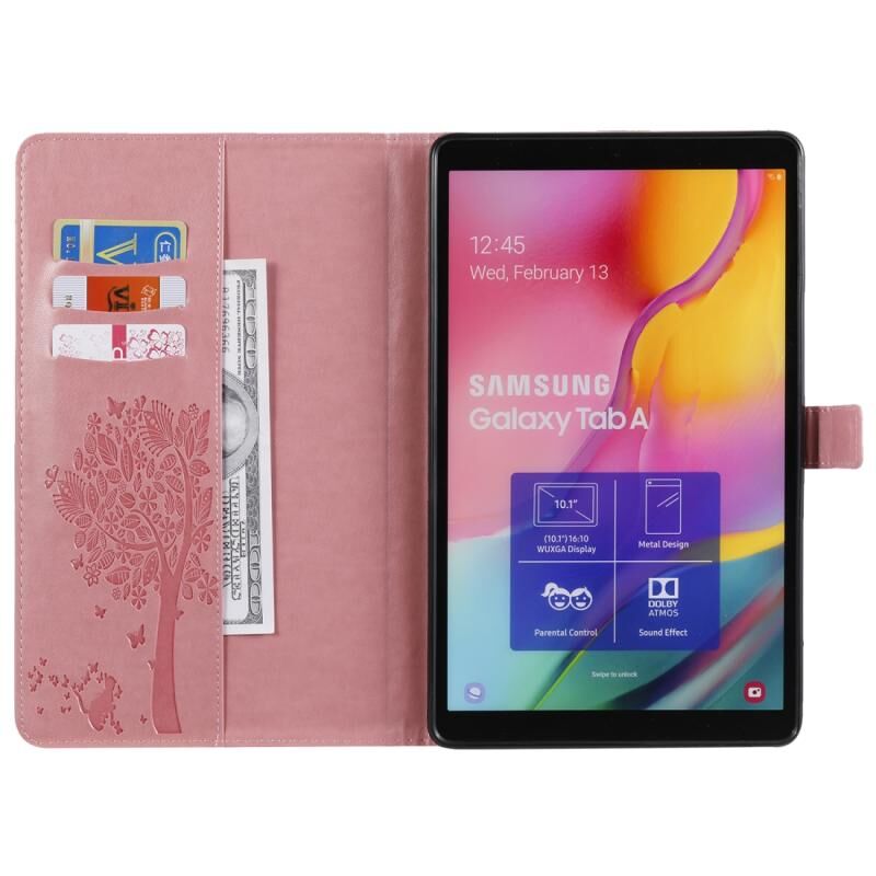 Για Galaxy Tab A 10.1 (2019) Θήκη δέρματος οριζόντιας αναδίπλωσης με σχέδιο τυπωμένου γατιού και δέντρου, με βάση στήριξης & υποδοχές καρτών & πορτοφόλι (Πράσινο)