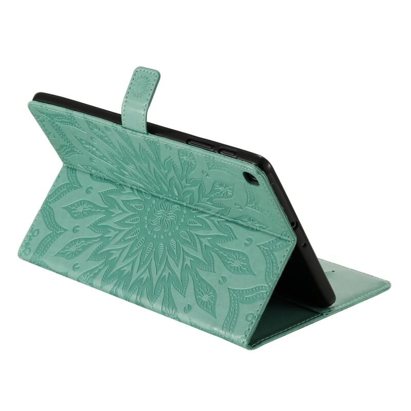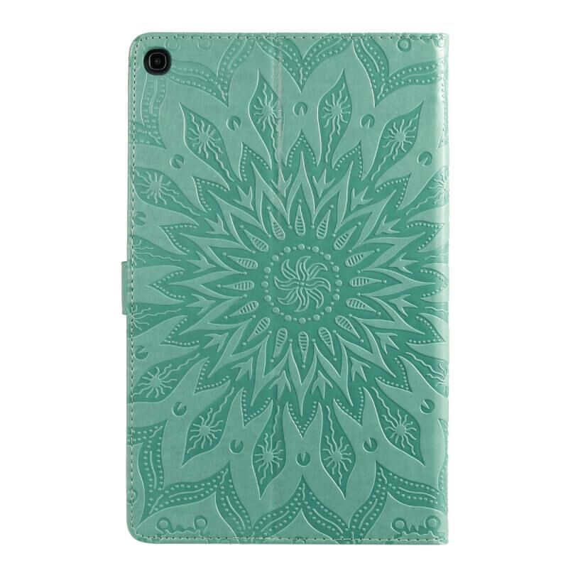 Θήκη δέρματος οριζόντιας αναδίπλωσης με εκτύπωση ηλιοτροπίου για Galaxy Tab A 10.1 (2019) με βάση στήριξης & υποδοχές καρτών & πορτοφόλι (Πράσινο)