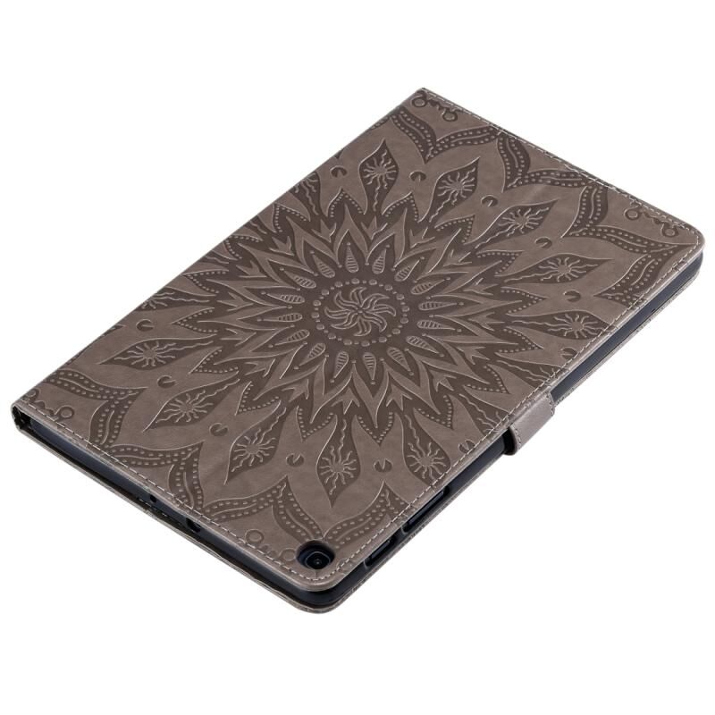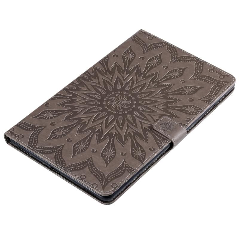Θήκη δέρματος οριζόντιας αναδίπλωσης με εκτύπωση ηλιοτροπίου για Galaxy Tab A 10.1 (2019) με βάση στήριξης & υποδοχές καρτών & πορτοφόλι (Καφέ)