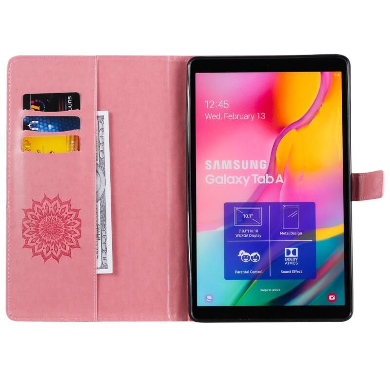 Θήκη δέρματος οριζόντιας αναδίπλωσης με εκτύπωση ηλιοτροπίου για Galaxy Tab A 10.1 (2019) με βάση στήριξης & υποδοχές καρτών & πορτοφόλι (Πράσινο)