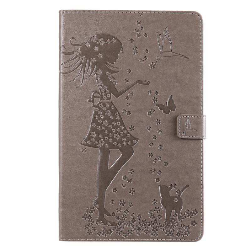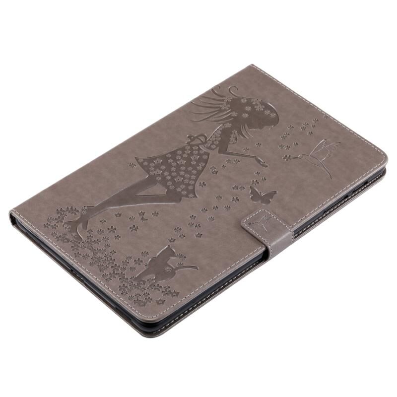 Για Galaxy Tab A 10.1 (2019) Θήκη δέρματος οριζόντιας αναδίπλωσης με σχέδιο γυναίκας και γάτας, με εκτύπωση υπό πίεση, με βάση στήριξης & υποδοχές καρτών & πορτοφόλι (Καφέ)