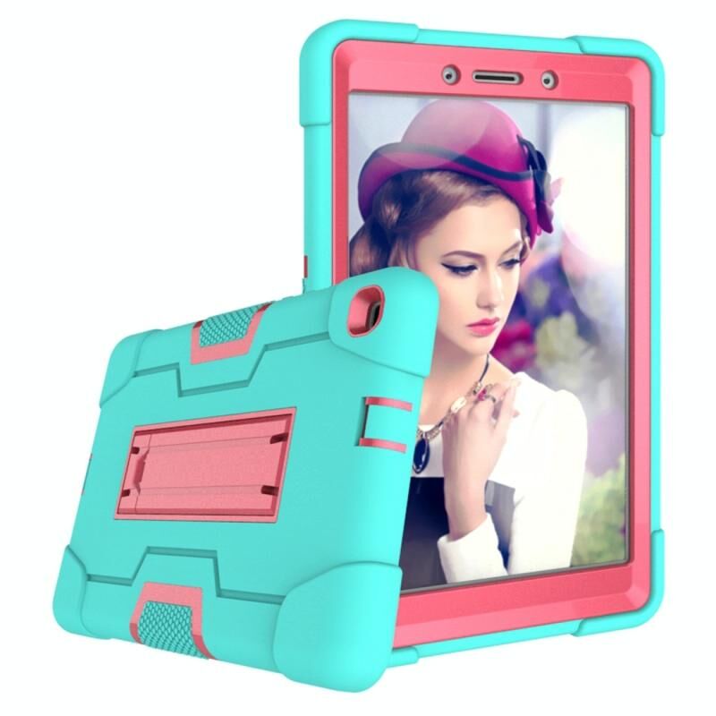 For Galaxy Tab A 8.0 (2019) T290 Contrast Color Silicone + PC Combination Case with Holder(Aqua + Rose Red)