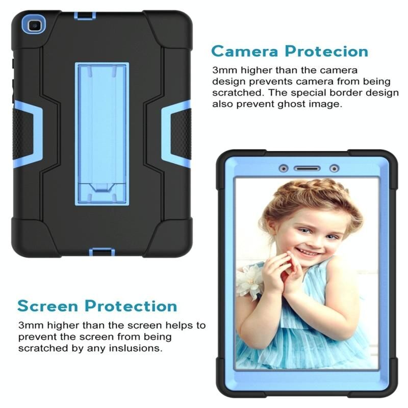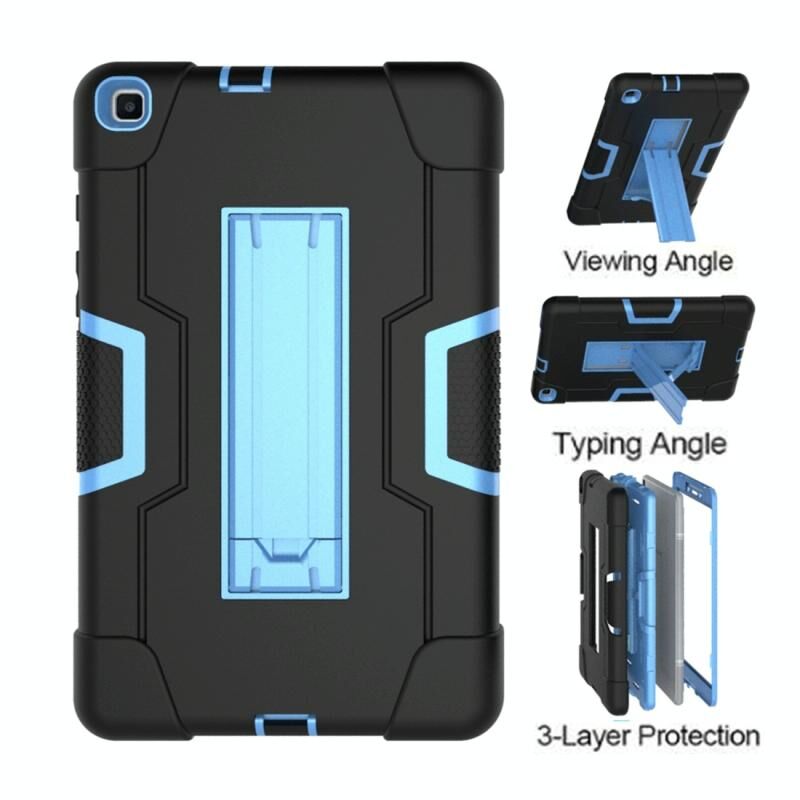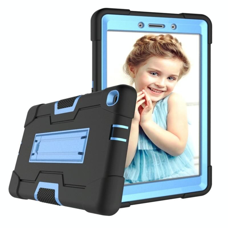 For Galaxy Tab A 8.0 (2019) T290 Contrast Color Silicone + PC Combination Case with Holder(Black + Blue)