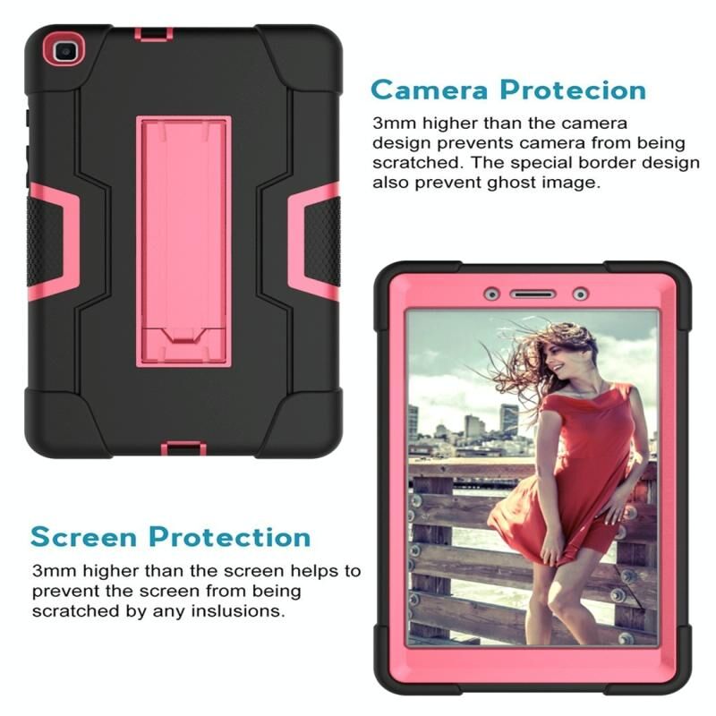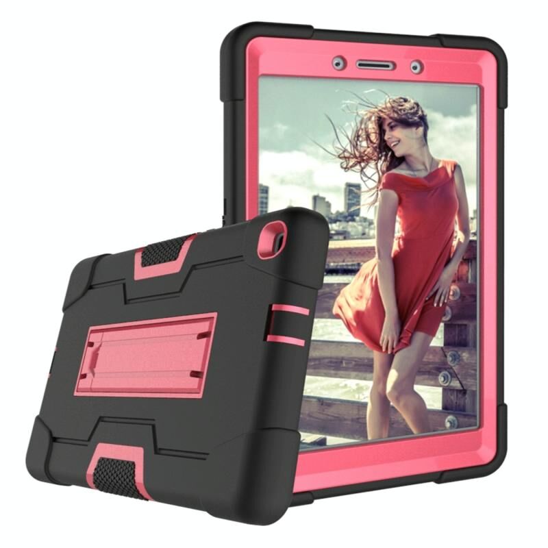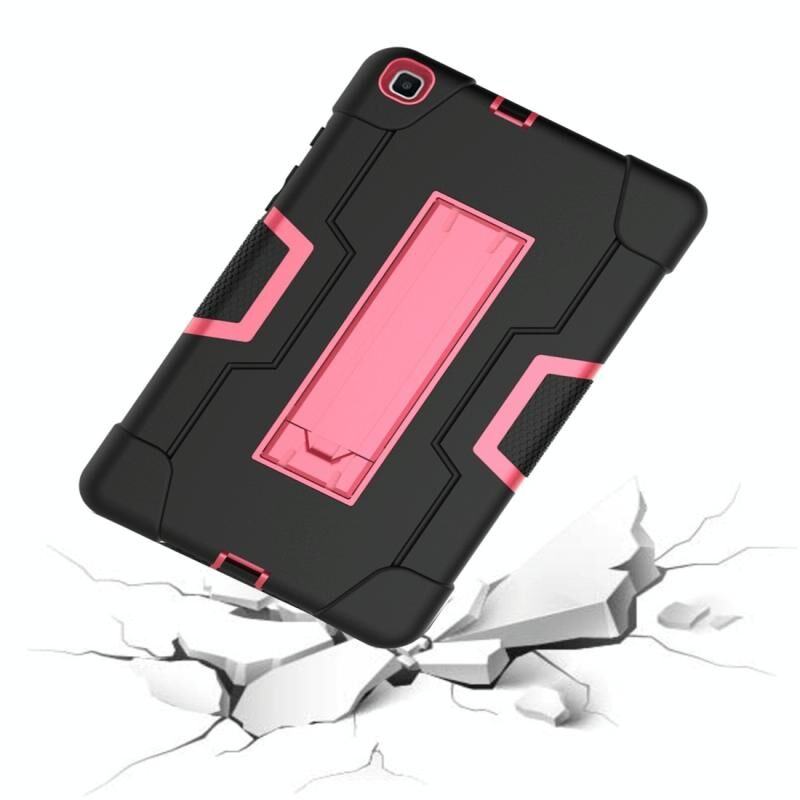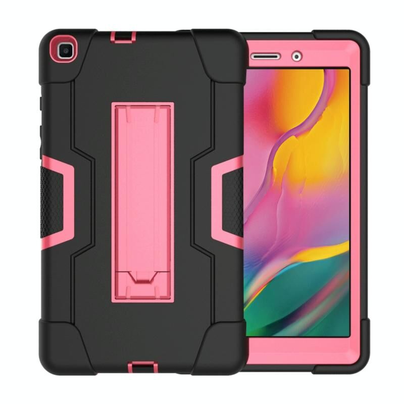 For Galaxy Tab A 8.0 (2019) T290 Contrast Color Silicone + PC Combination Case with Holder(Black + Rose Red)