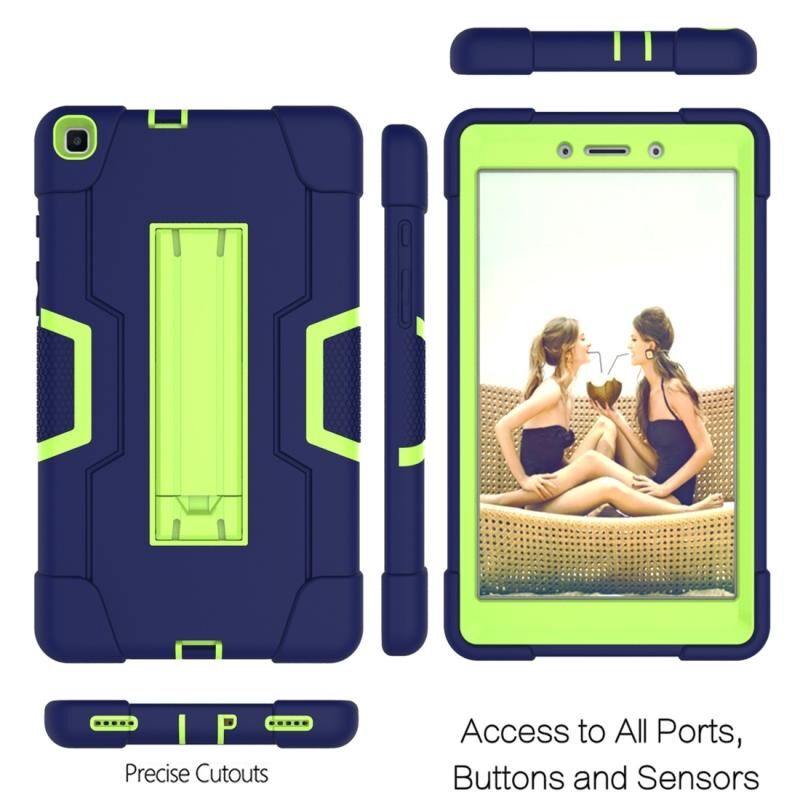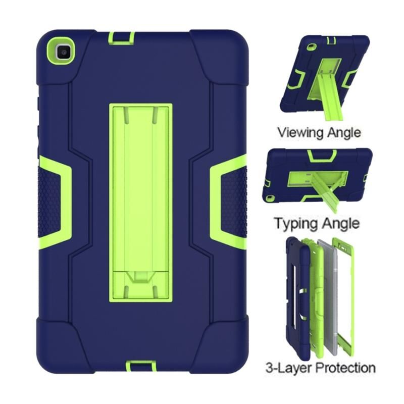 For Galaxy Tab A 8.0 (2019) T290 Contrast Color Silicone + PC Combination Case with Holder(Navy Blue +Olivine)