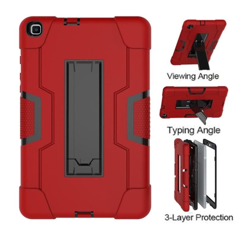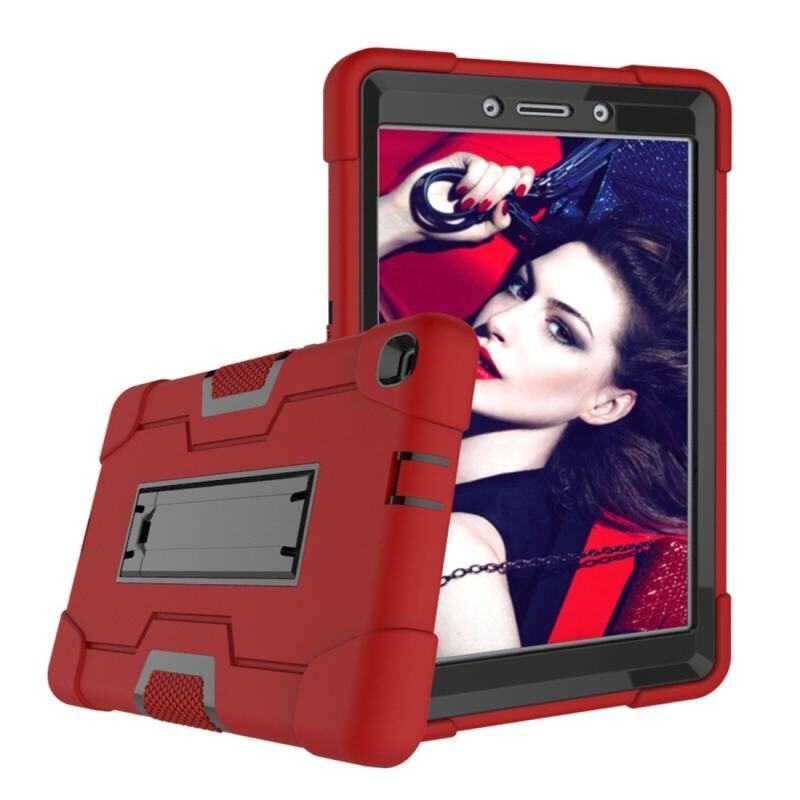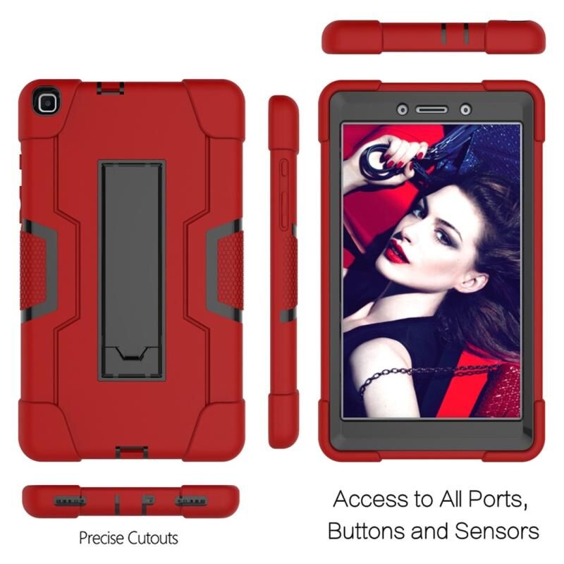 For Galaxy Tab A 8.0 (2019) T290 Contrast Color Silicone + PC Combination Case with Holder(Red + Black)