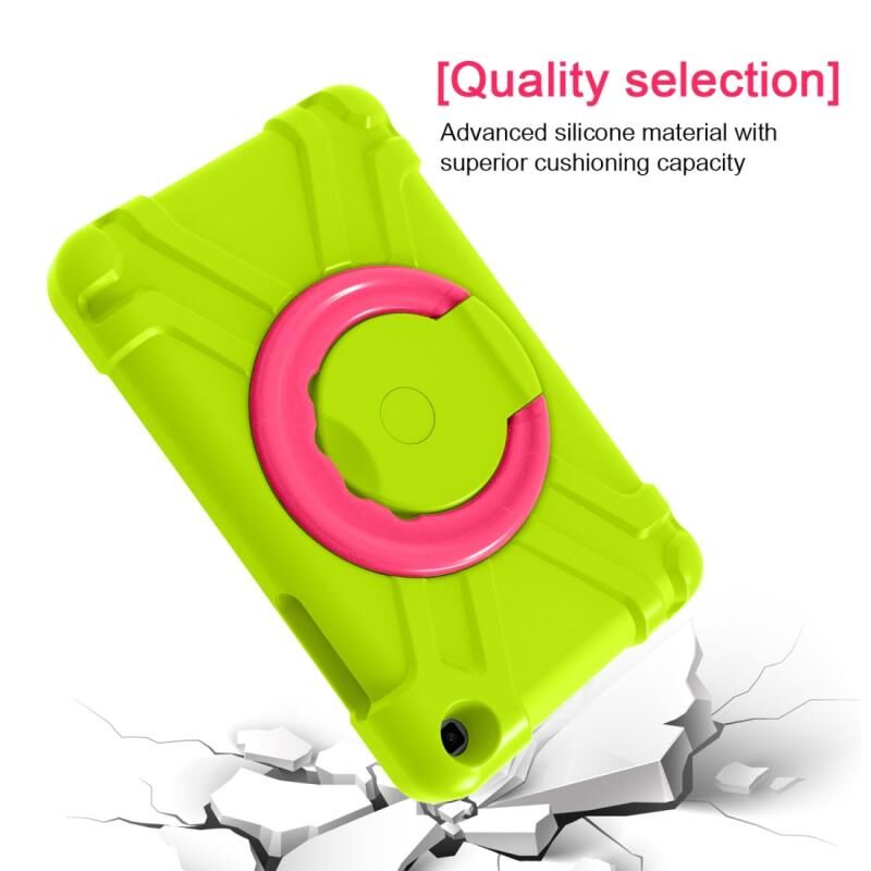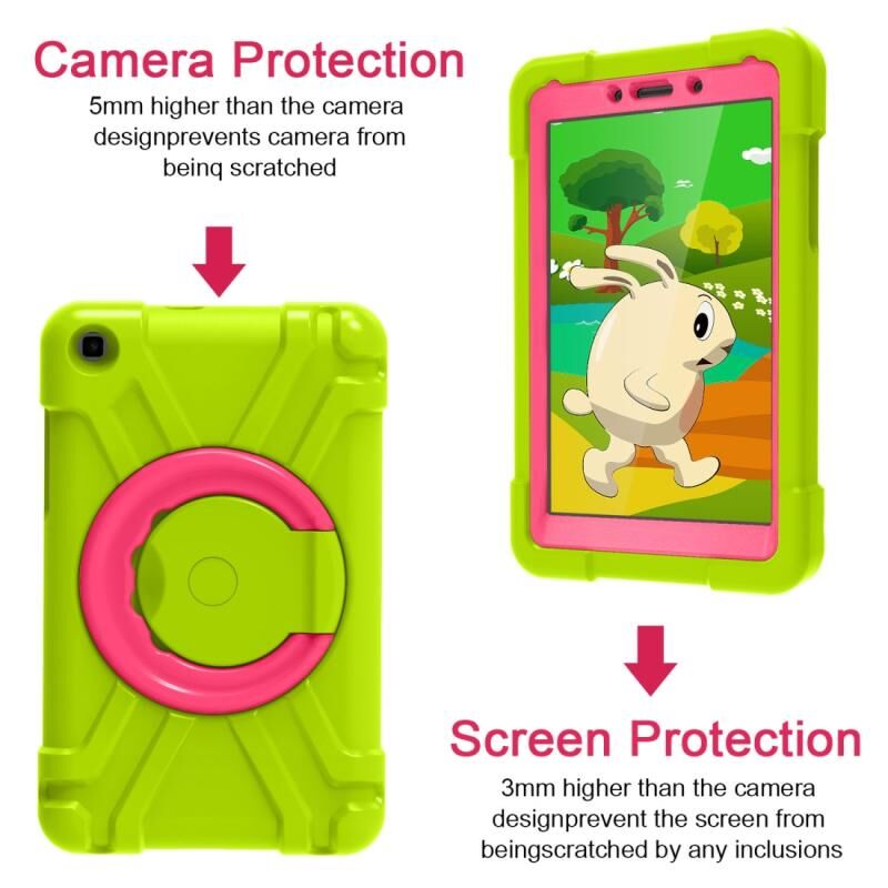 Για Galaxy Tab A 8.0 (2019) T290 / T295 PC + Συνδυαστική Θήκη Σιλικόνης Ανθεκτική στις Κραδασμούς με Περιστρεφόμενη Βάση 360 Μοιρών & Λαβή (Κόκκινο Ρόδι + Μπλε)