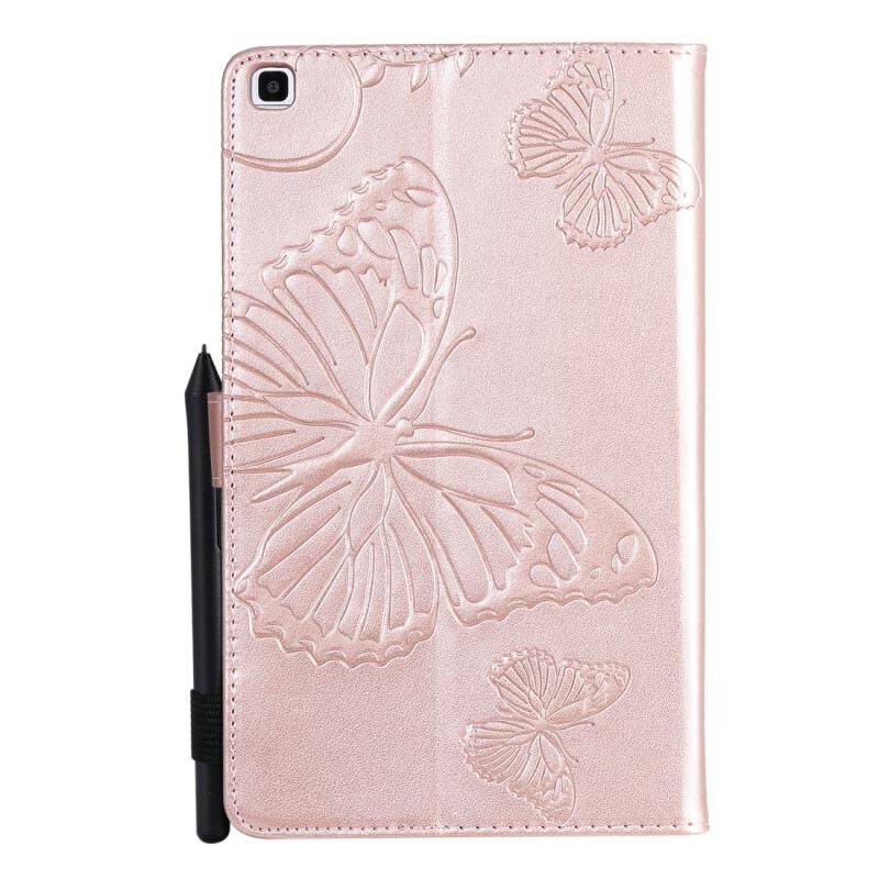 Για Galaxy Tab A 8.0 (2019) T295/T290 Θήκη οριζόντιας αναδίπλωσης από δερματίνη PU με σχέδιο πεταλούδας, εκτυπωμένο με πίεση, με βάση στήριξης & υποδοχές καρτών & πορτοφόλι & θήκη στυλό (Χρυσό ροζ)