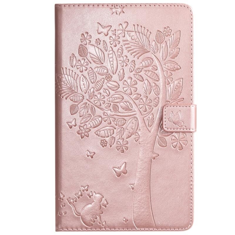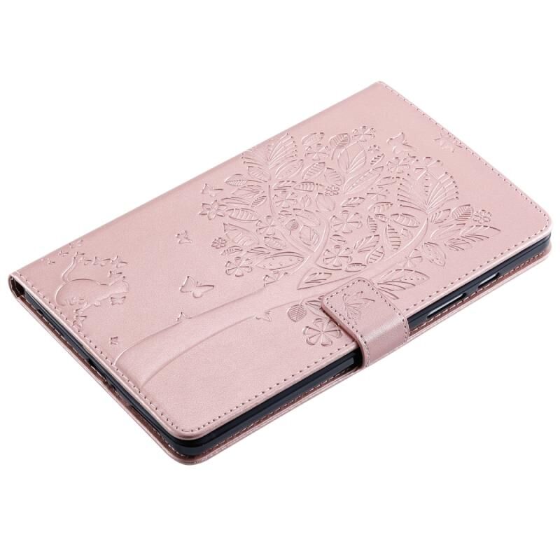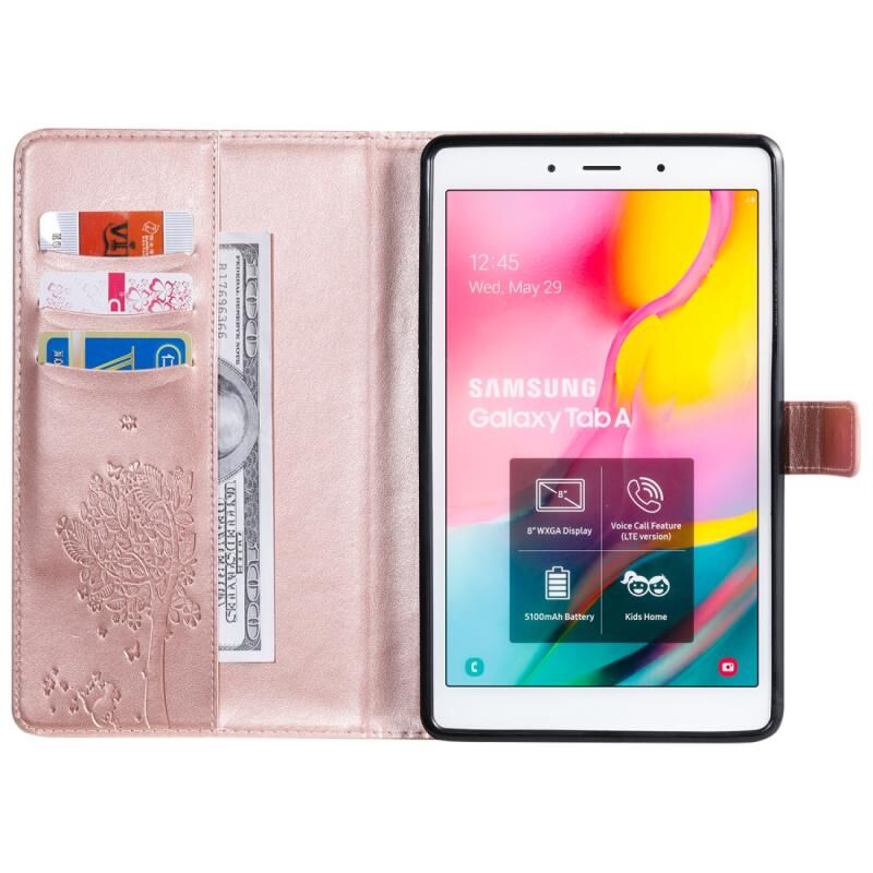Θήκη δέρματος οριζόντιας αναδίπλωσης με σχέδιο γάτας και δέντρου με εκτύπωση για Galaxy Tab A 8.0 (2019) T295/T290, με βάση στήριξης & υποδοχές καρτών & πορτοφόλι (Πράσινο)