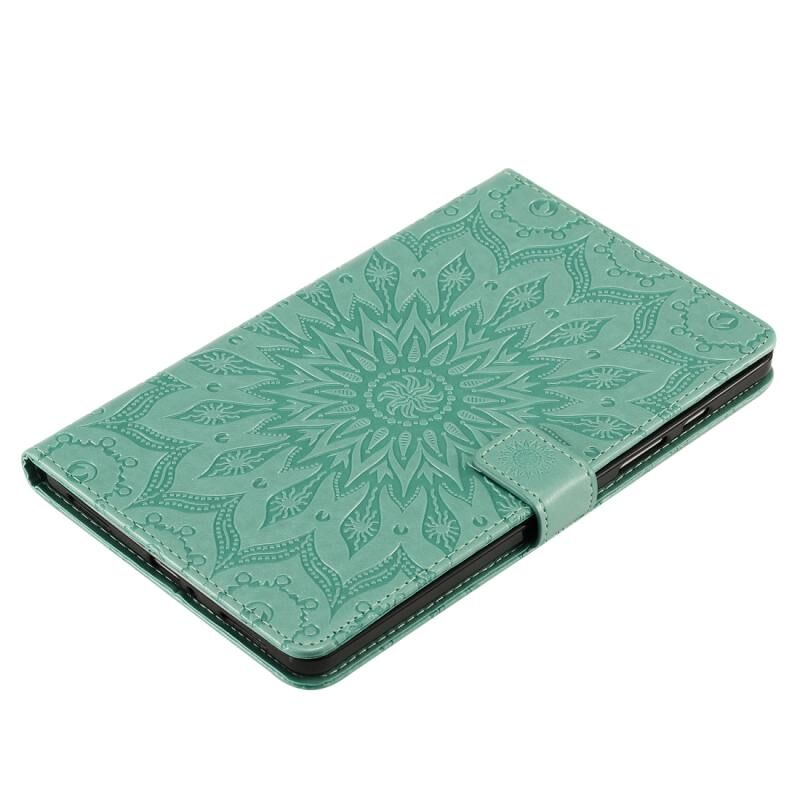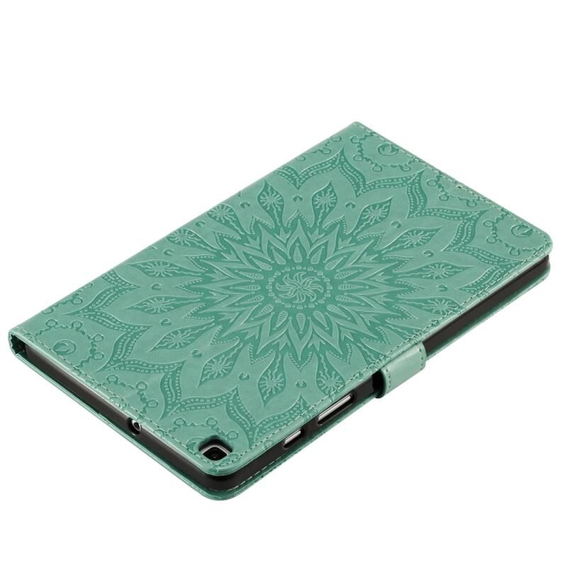 Θήκη δέρματος οριζόντιας αναδίπλωσης με εκτύπωση λουλουδιών ηλίου για Samsung Galaxy Tab A 8.0 (2019) T295/T290, με βάση στήριξης & θήκες καρτών & πορτοφόλι (Πράσινο)